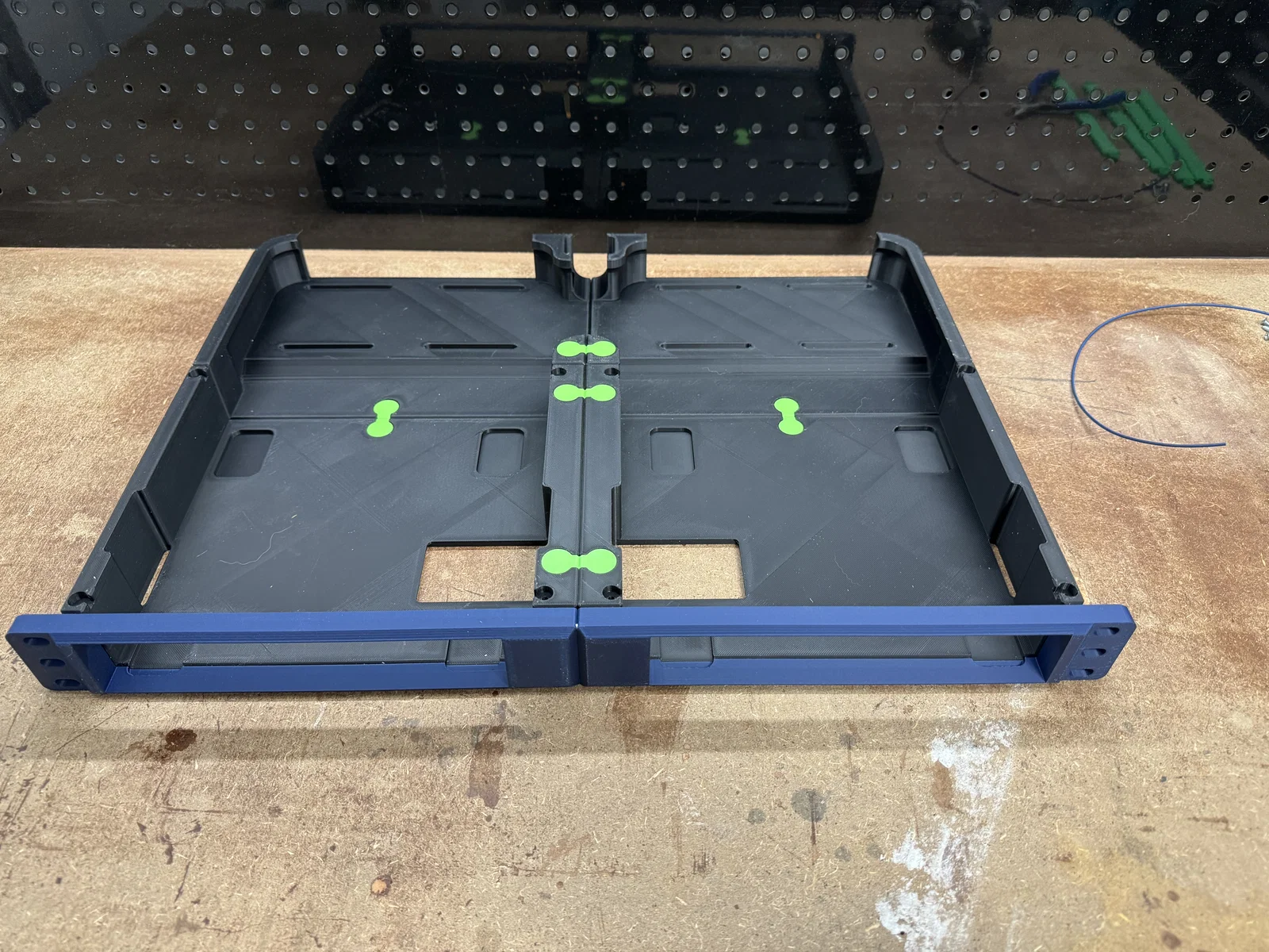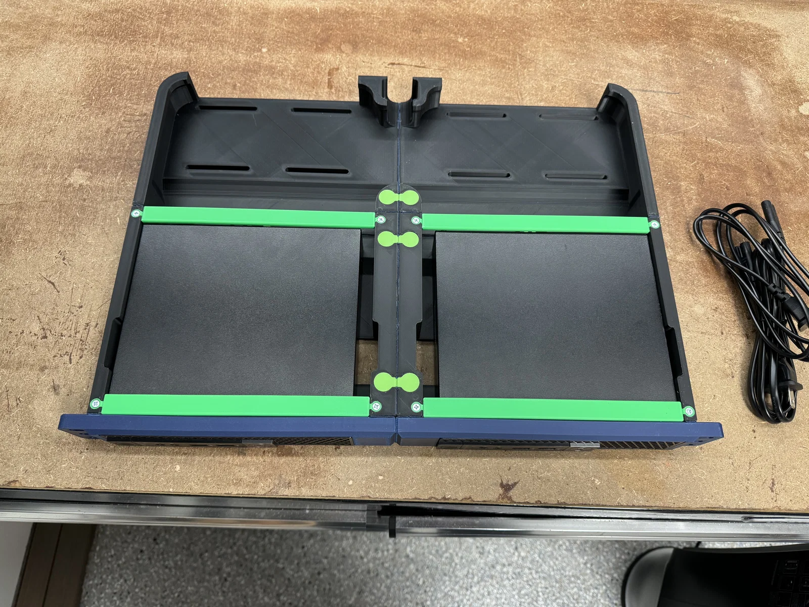 Giá rack 1U giúp gắn 2 Dell Micro PC cùng bộ nguồn trong 1U tủ rack, có kèm quản lý cáp. In bằng PLA+; cần vùng in tối thiểu 225×185×50mm, với bàn 250×250mm sẽ tốn khoảng 5 lần in full bed.