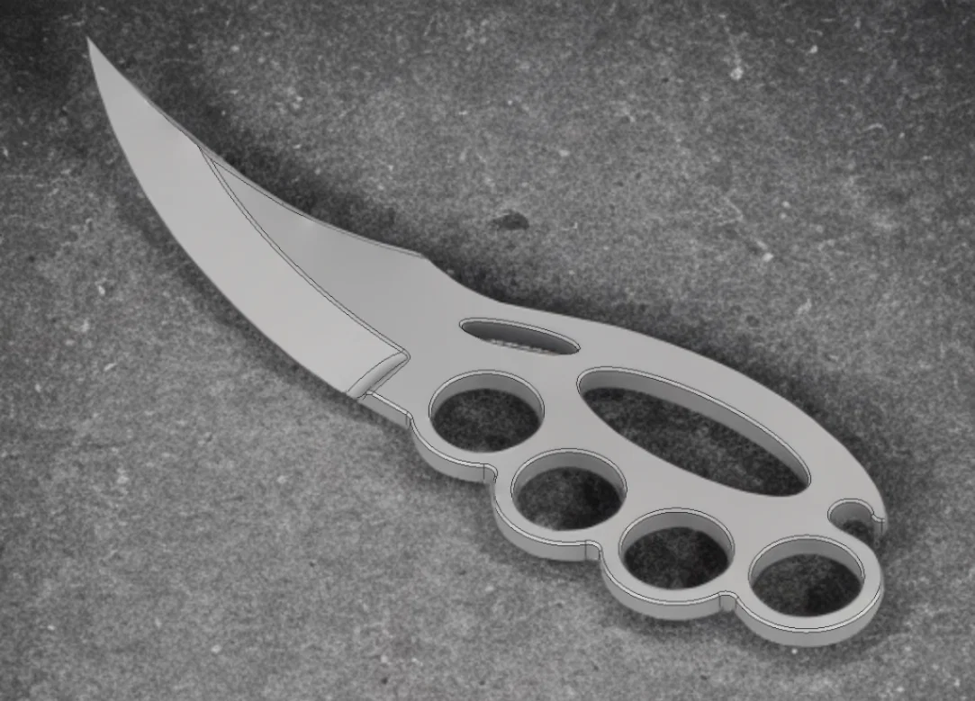 Mẫu Knife with Knuckle Duster Handle: con dao có tay cầm dạng knuckleduster. Lỗ xỏ ngón mặc định 20mm, có bảng ring size (US) kèm scale factor để bạn scale theo đúng cỡ nhẫn của mình.