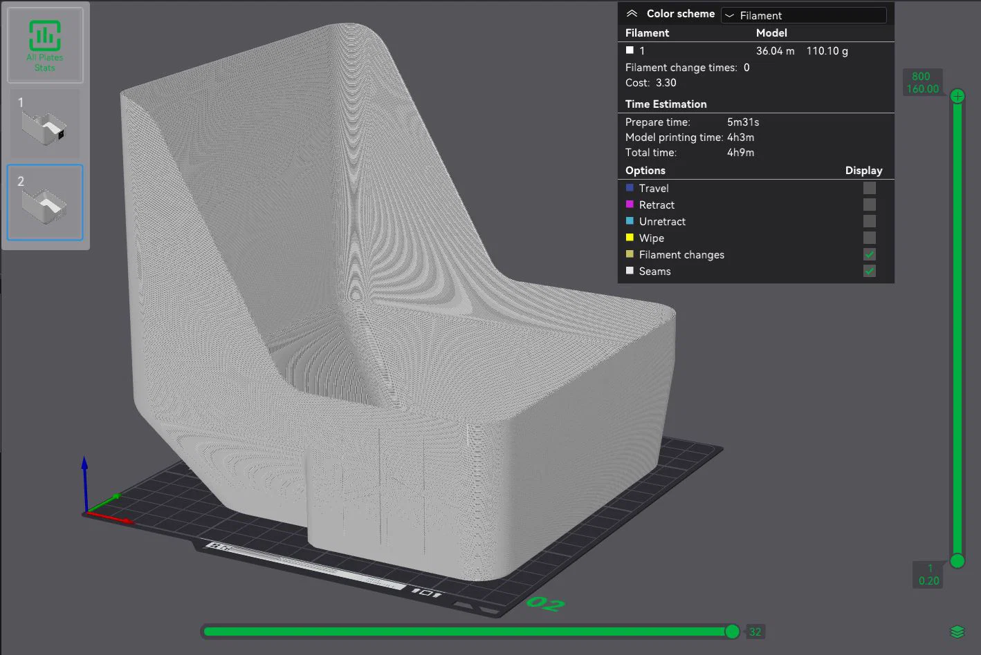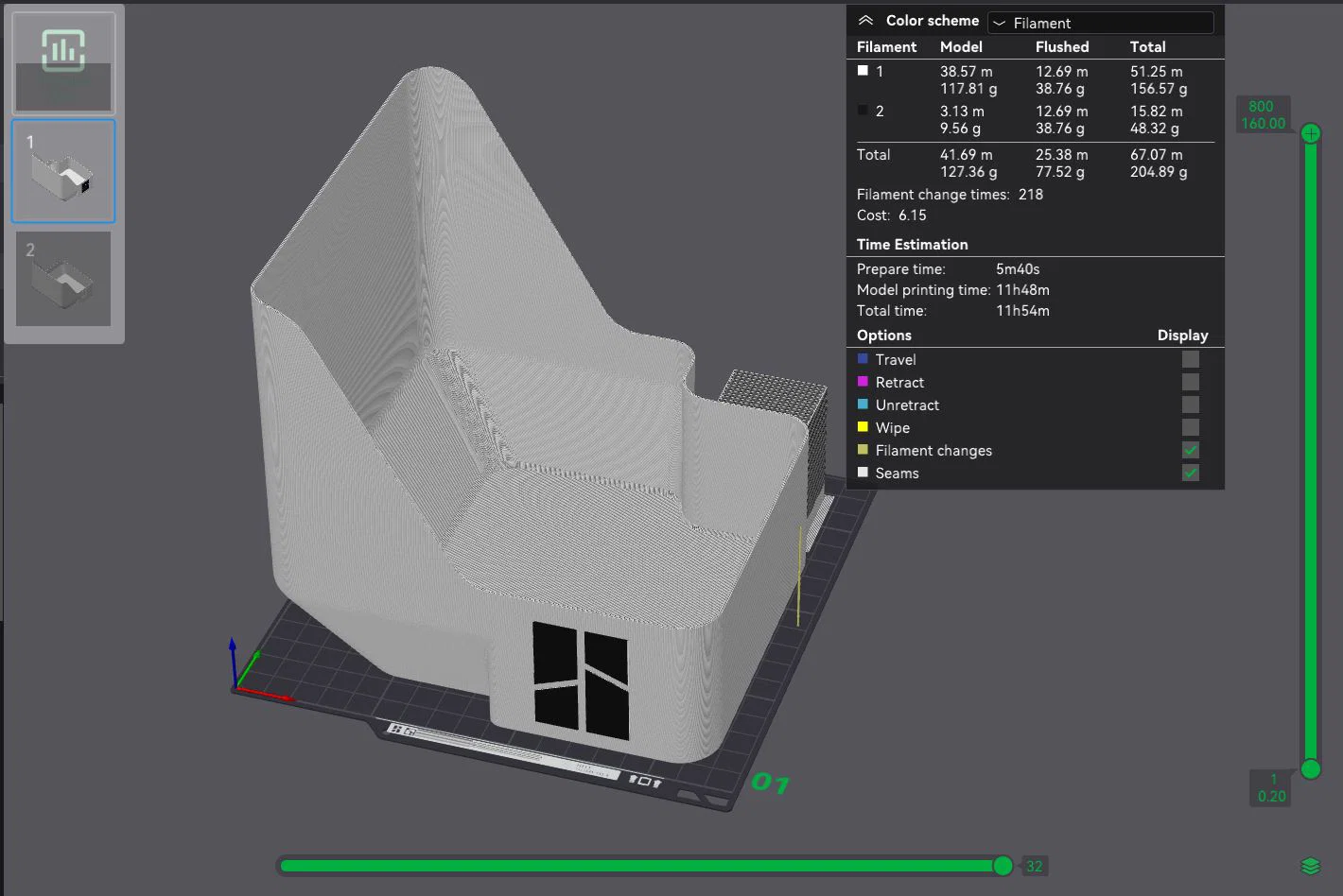 Như đã nói ở đoạn trước, mẫu này có chiều cao b = 160 mm, giúp (gần như) tận dụng tối đa chiều cao khả dụng của A1 Mini. Mẫu vẫn tuân theo tiêu chí in của phiên bản trước, tối ưu cho việc in trên A1 Mini. Một phiên bản dành cho in hai màu, còn phiên bản kia tận dụng gần như toàn bộ heated bed để in một màu.