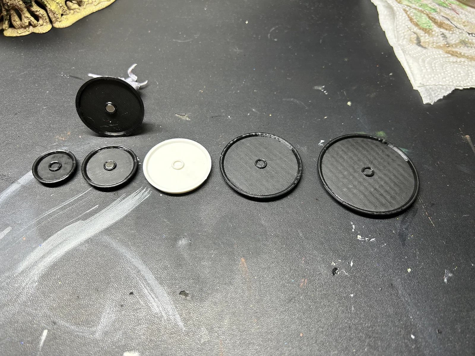 Bộ đế mini tròn trơn size 25/32/40/50/60 mm, có sẵn rãnh để gắn nam châm 5x1 mm. Kèm file SCAD/OpenSCAD để bạn tự chỉnh thông số (width) và tạo kích thước khác, in 0.3mm cho nhanh.