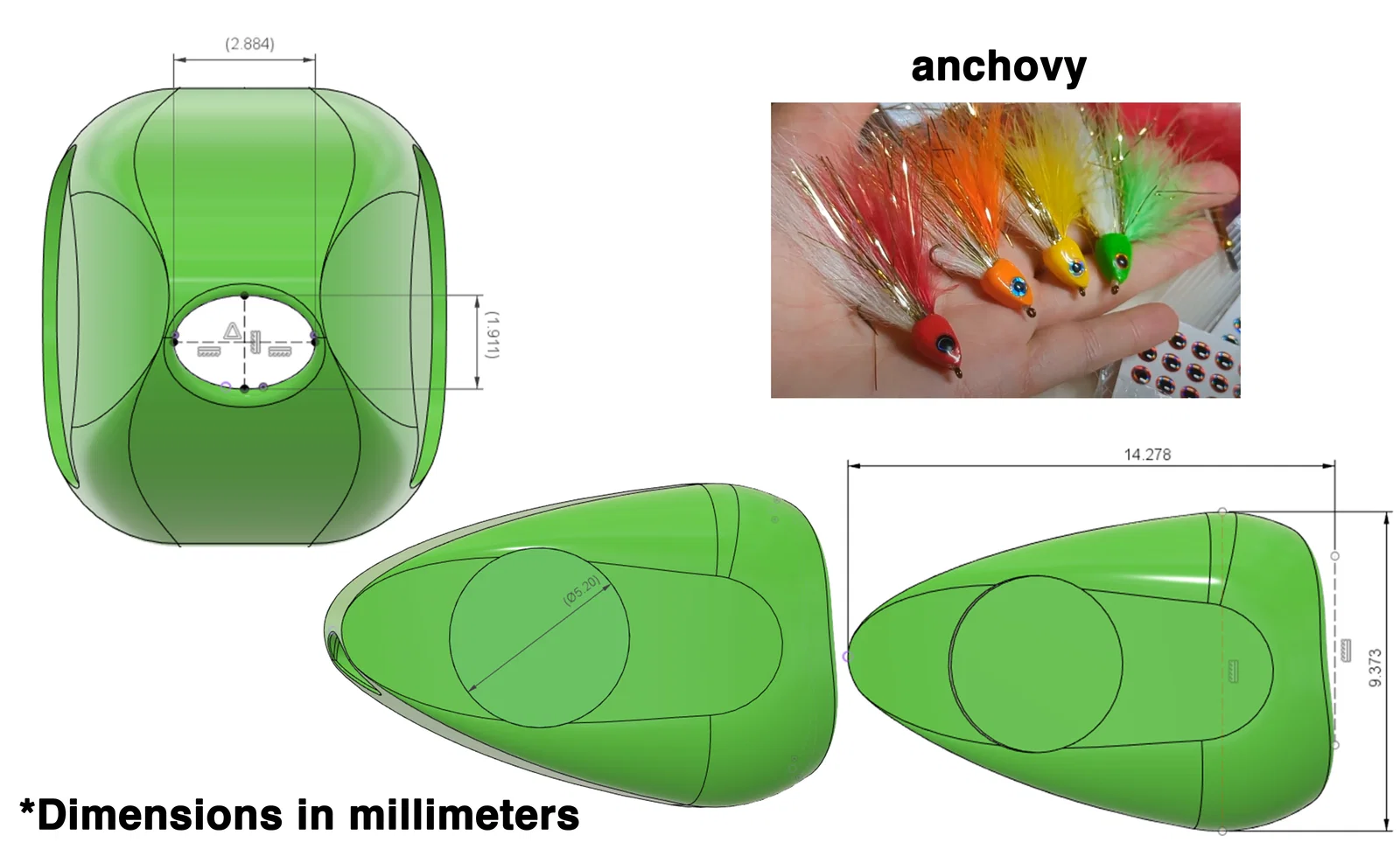 Mình đã 3D model và in 3D mấy mẫu “fish skull” này để buộc (tying) mồi giả dạng cá con (bait fish flies). Dưới đây là link các video nơi mình giới thiệu cách mình làm, rồi đem mấy cái fish skull này đi test: