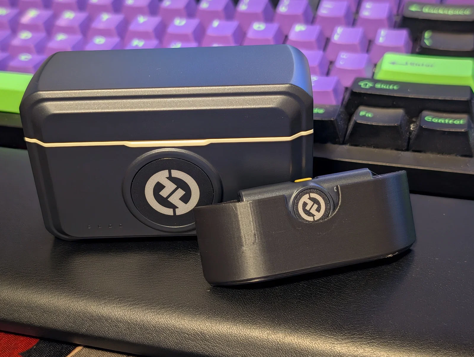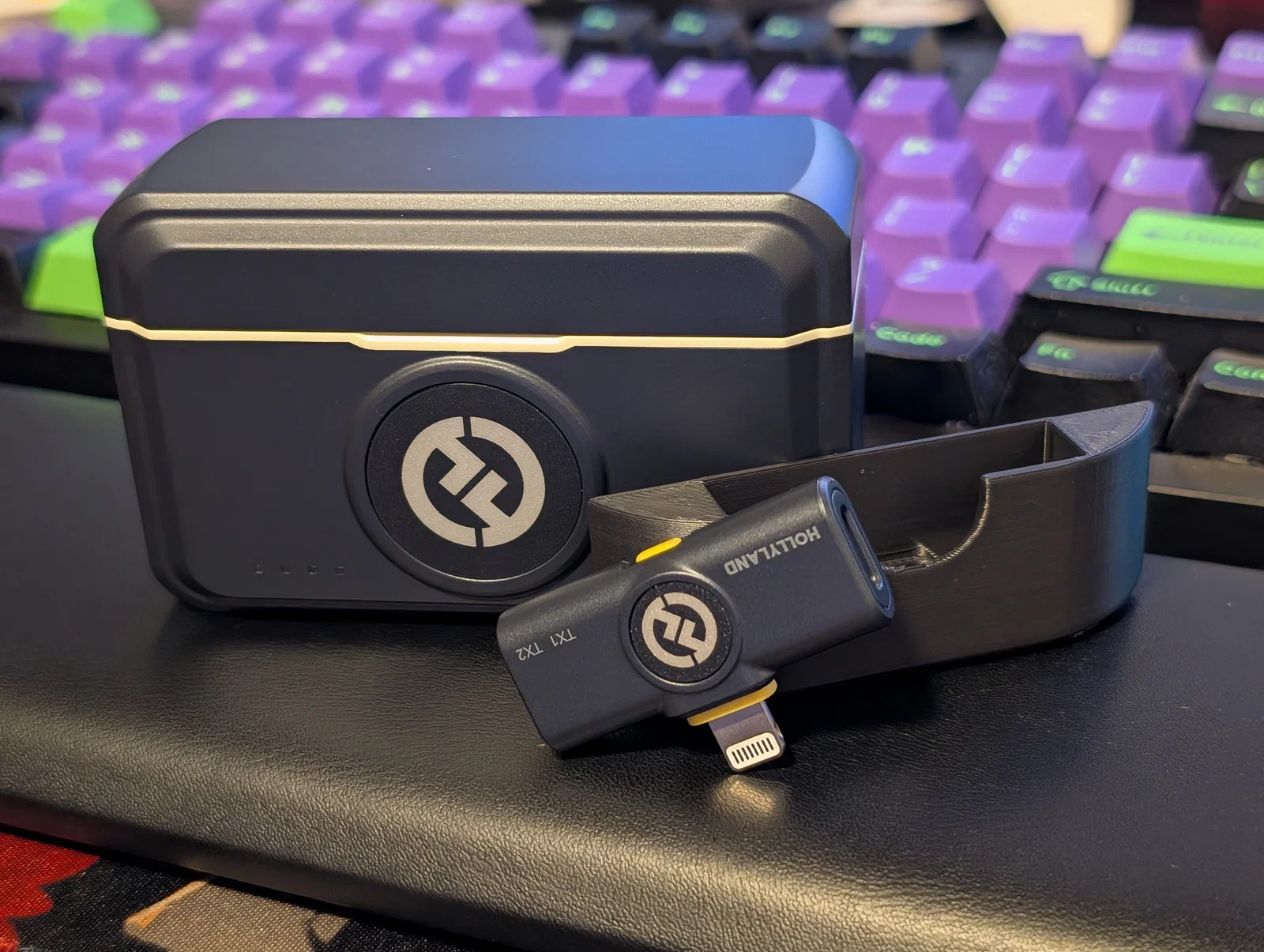 Mình mới mua bộ Hollyland Lark M2 Wireless Microphone Combo và hơi thất vọng vì trong hộp/case không có chỗ để cất cái adapter. Mình muốn một món gì đó gọn, không vướng víu nên đã thiết kế cái holster/holder này để gắn ở mặt lưng của case.