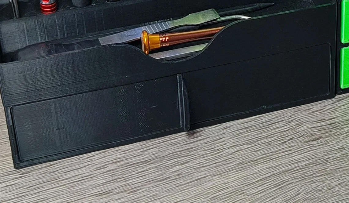 Dựa trên thiết kế gốc của mình: STACKABLE MODULAR DRAWERS by Just Makin | Download free STL model | Printables.com. Mình làm bản DOUBLEWIDE (gấp đôi bề ngang) để hy vọng bạn có thể xếp chồng chung với các bản gốc. Mình chưa test thử nữa, nhưng dự định sẽ làm sớm ngay khi mình có thêm PETG!