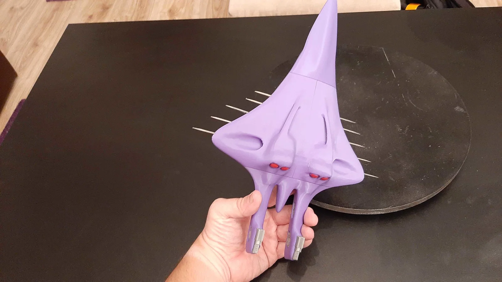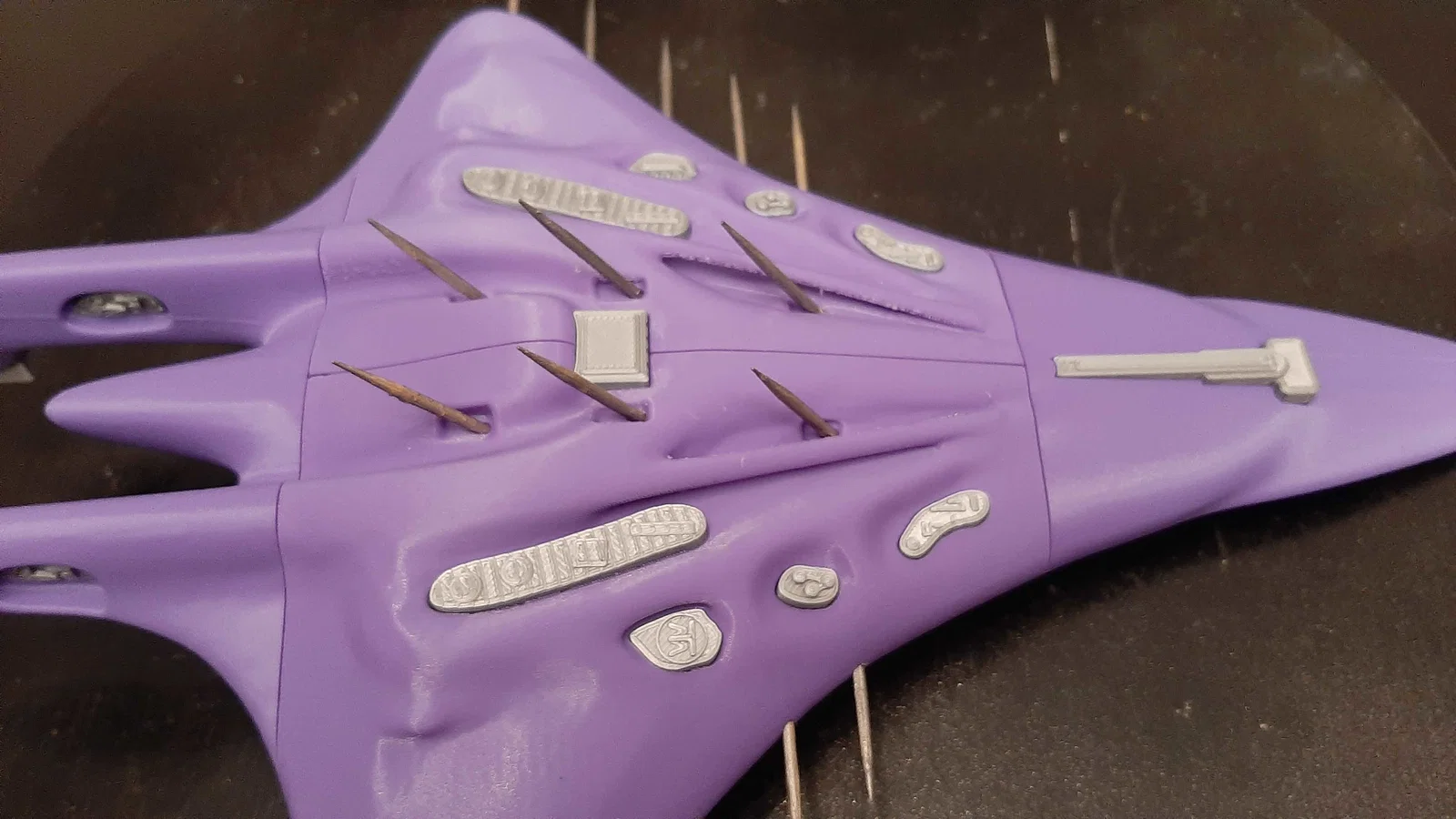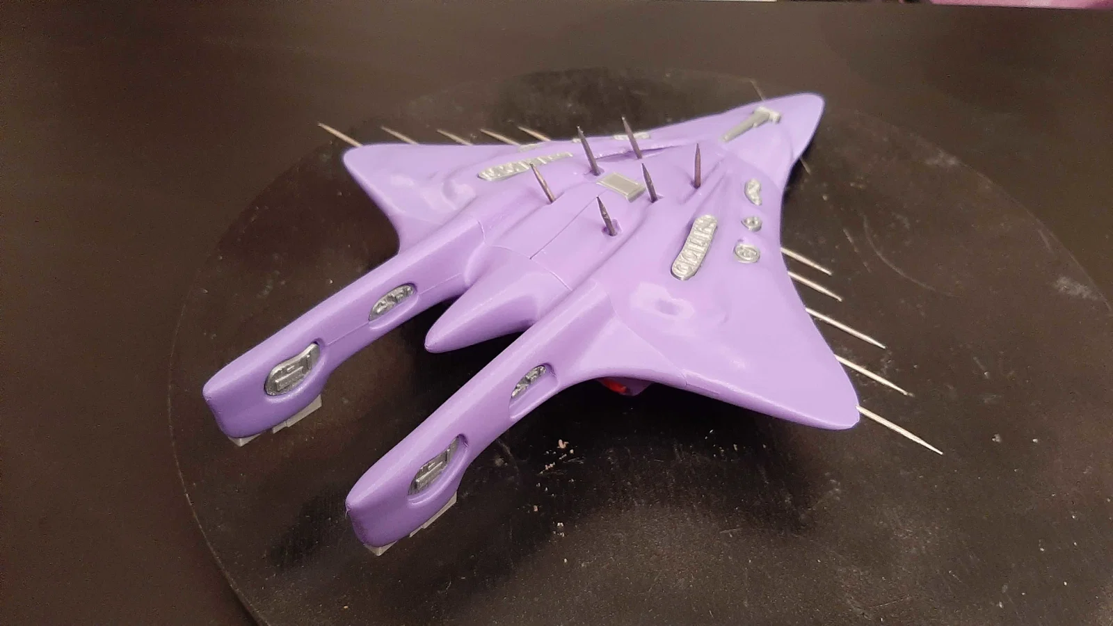 Model Wraith Cruiser từ Stargate Atlantis dạng kit. Một số greebles nhỏ nên chấm thêm keo để cố định chắc chắn. Phần anten không in mà dùng tăm rồi sơn màu. Không kèm hướng dẫn vì lắp rất dễ.