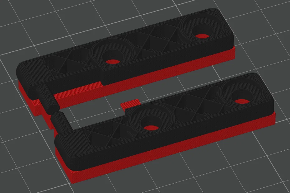 Phần của bản lề dưới (bottom hinge) được bắt lên frame nên in với infill 100%.