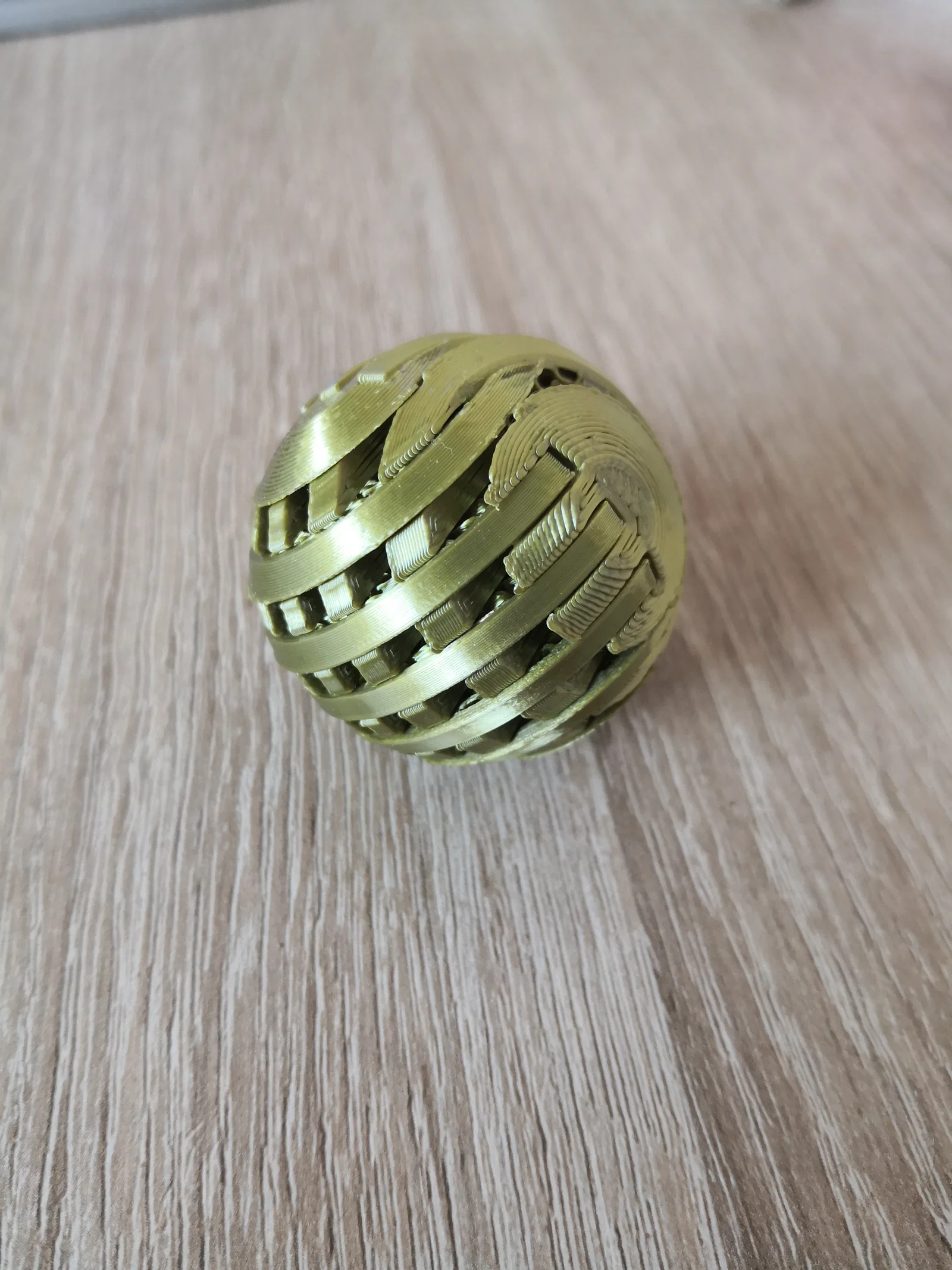 Mẫu kit card hình quả cầu đơn giản, được tạo bằng CadQuery. Khi in nhớ tăng minimum feature size lên 120% hoặc tắt thin wall. In 0 top/bottom walls, infill 10–20%, và in 2 bản để ráp đủ quả cầu.
