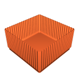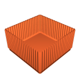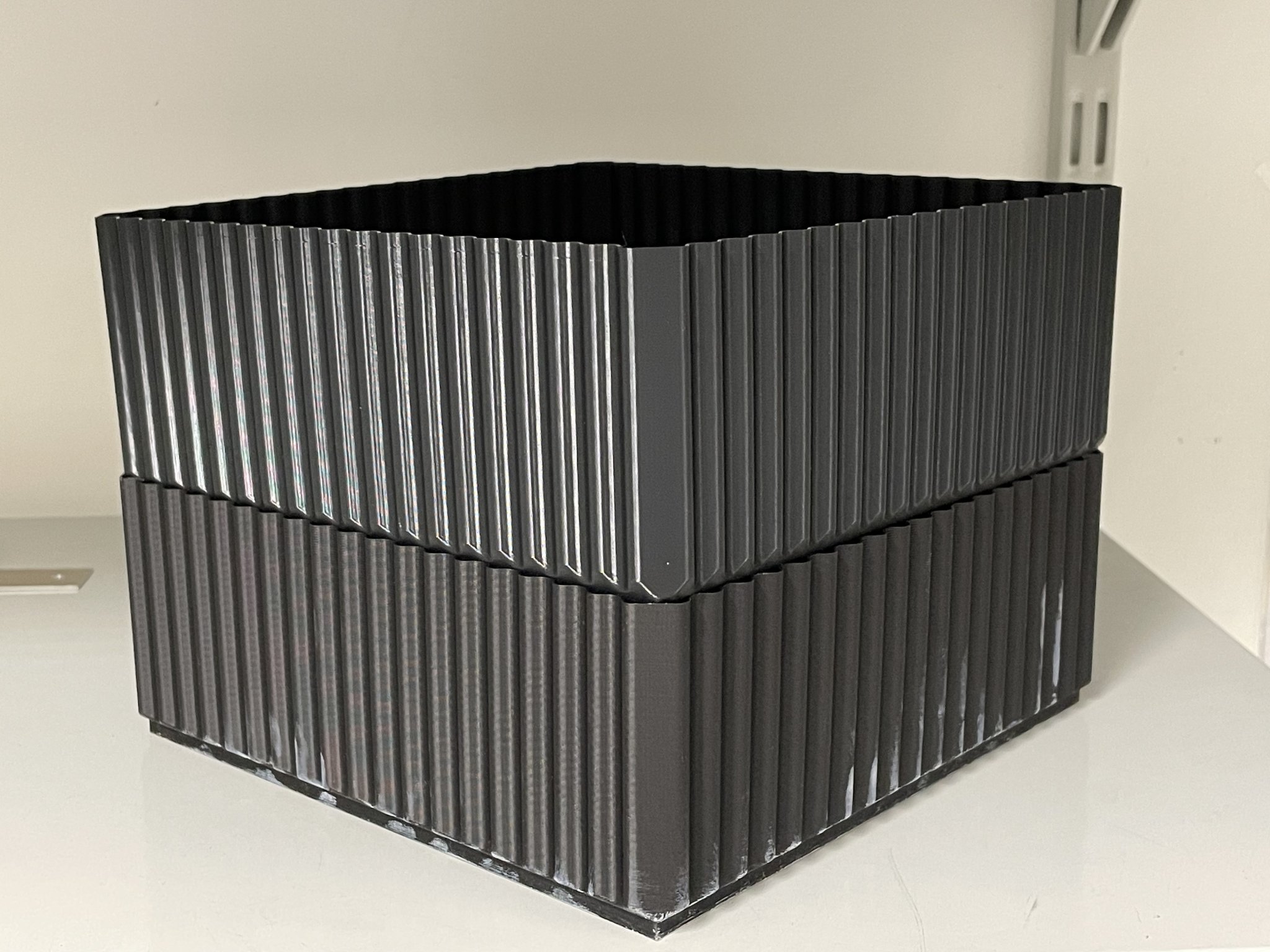Các cạnh của hộp được thiết kế để cứng và in nhanh nhờ vào hình học của chúng, tương tự như lớp lấp đầy gyroid được yêu thích.