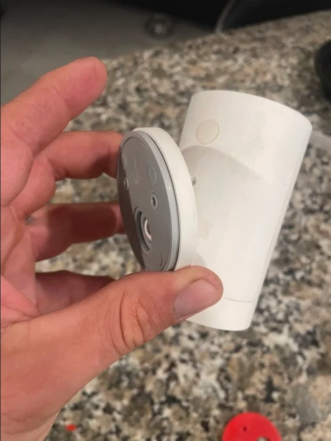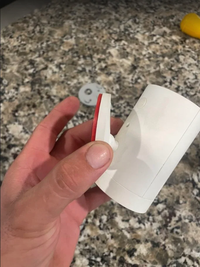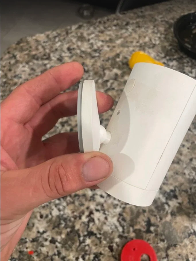 Mình phác thảo một tấm plate gắn tường cho Ring Stickup Camera. Chỉ cần đánh dấu và khoan lỗ trên tường rồi bắt vít cố định plate lên tường. Cần in supports vì có các tab bị overhang—đây là phần để camera tựa lên.