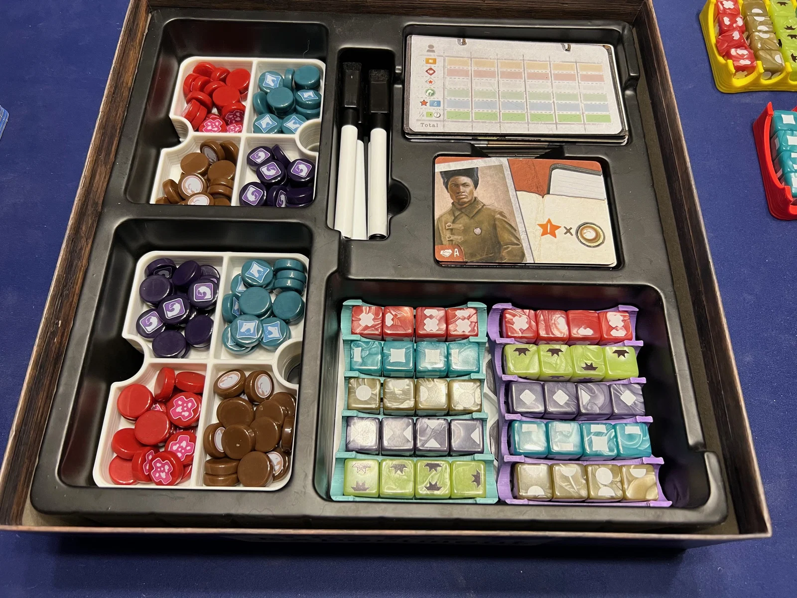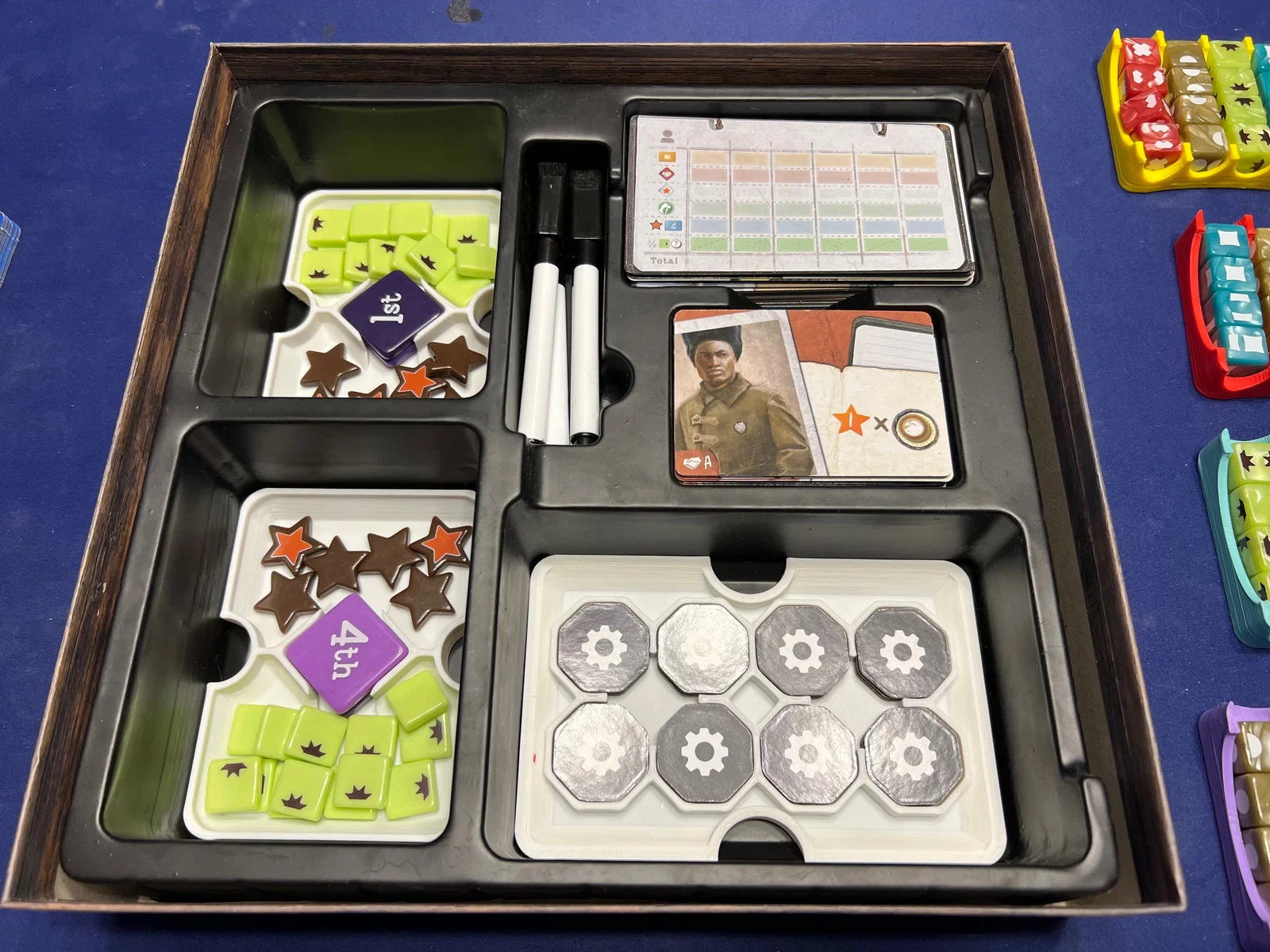 Xem ảnh để biết cách sắp xếp các món vào insert. Từng file đều ghi rõ công dụng và số lượng cần in tùy thuộc vào việc bạn chỉ in cho bản base hay in cho cả bản mở rộng 5-6 người chơi.