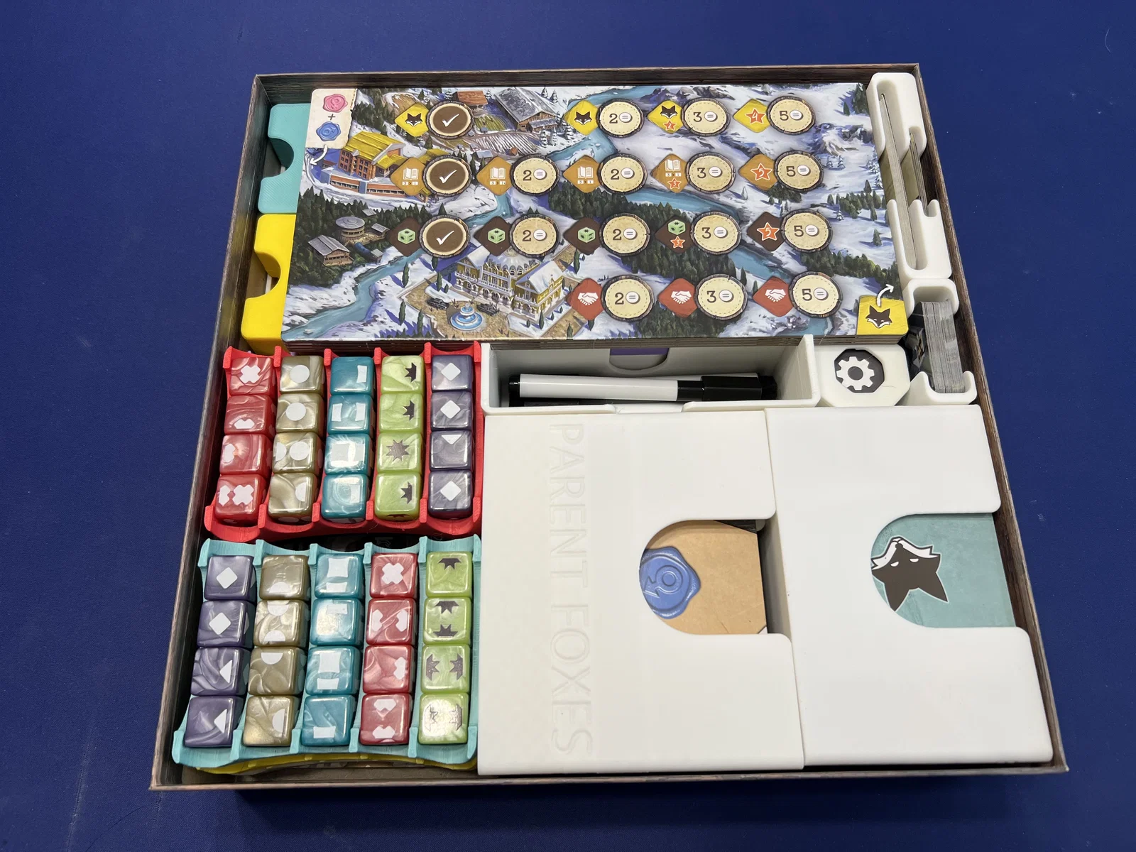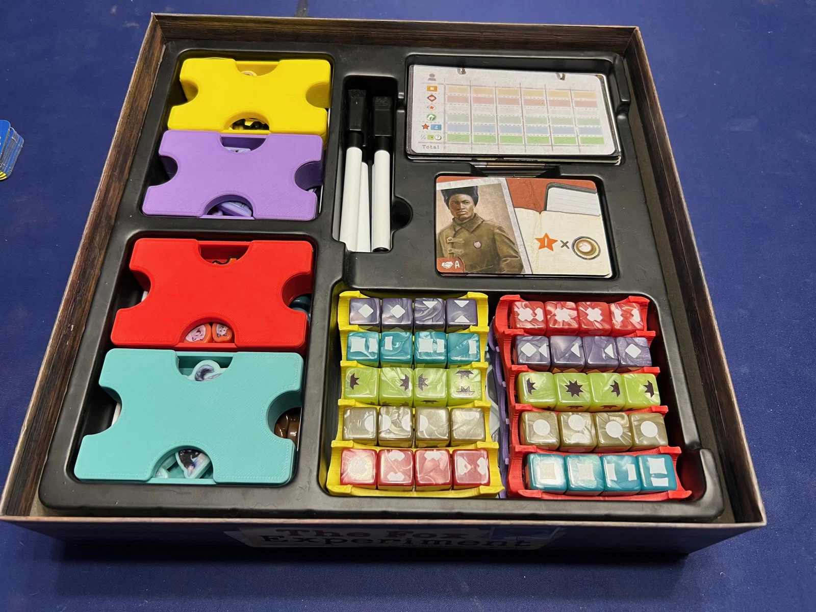 Bộ insert tất-cả-trong-một này có thể chứa toàn bộ linh kiện của board game "The Fox Experiment". Nó sẽ giúp bạn sắp xếp trò chơi gọn gàng, hỗ trợ thiết lập, dọn dẹp và chơi game nhanh chóng hơn. Bộ insert được thiết kế để bạn có thể in một phần hoặc toàn bộ. Nếu bạn chỉ có bản base game, bạn có thể in các thành phần vừa vặn với khay nhựa định hình sẵn đi kèm trong hộp game. Nếu bạn có bản mở rộng 5-6 người chơi (hoặc chỉ muốn in tất cả, bao gồm cả khay đựng thẻ), thì mọi thứ sẽ nằm gọn trong hộp mà không cần dùng đến khay nhựa gốc.