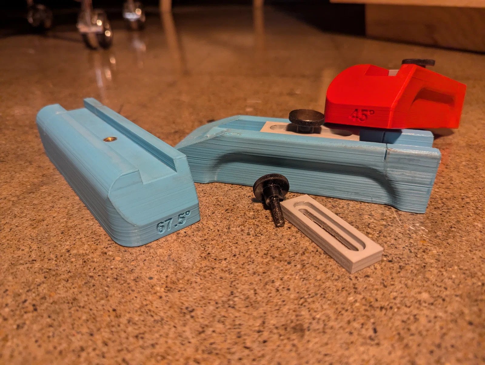 Mình đã in thử bằng cả nhựa PETG và PLA. Với PLA thì thấy dùng ổn rồi, nhưng sắp tới mình muốn thử in bằng Nylon xem sao vì nó chắc chắn hơn và bề mặt cũng trơn láng hơn. Mình khuyên các bạn nên in mà không cần support, nhưng hãy tăng cường độ cứng ở phần mặt cắt, xung quanh vị trí gắn insert và rãnh trượt (miter groove). Bạn cứ dùng modifier solid để tăng số lớp tường (wall loops) và mật độ infill ở những chỗ đó là được.