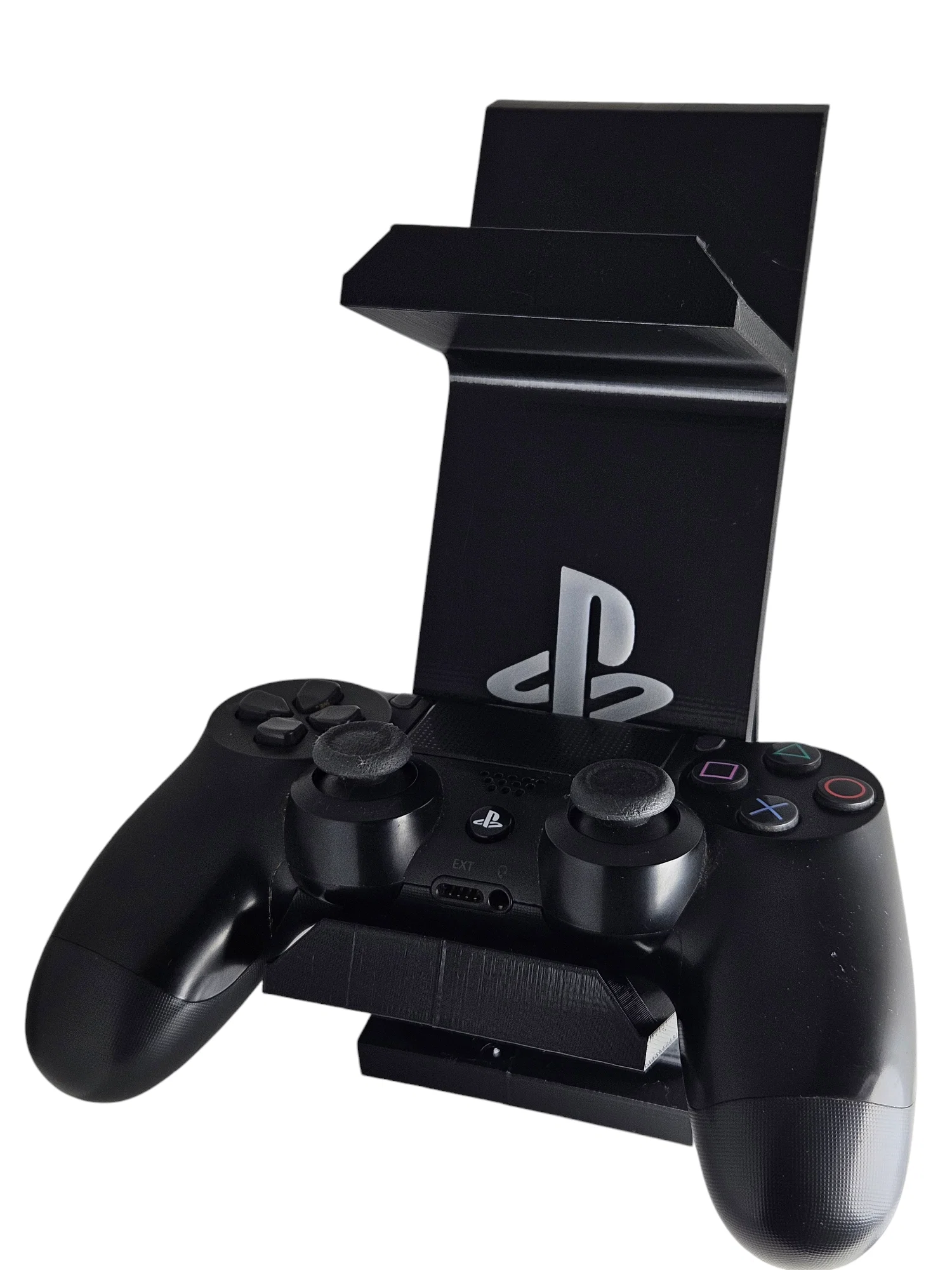 Mẫu giá đỡ tay cầm PS thiết kế gồm 2 phần riêng biệt, dễ dàng in bằng nhựa PLA hoặc PETG. Sản phẩm không cần dùng support, hỗ trợ in phối màu cực bắt mắt để tạo điểm nhấn cho góc chơi game của bạn.