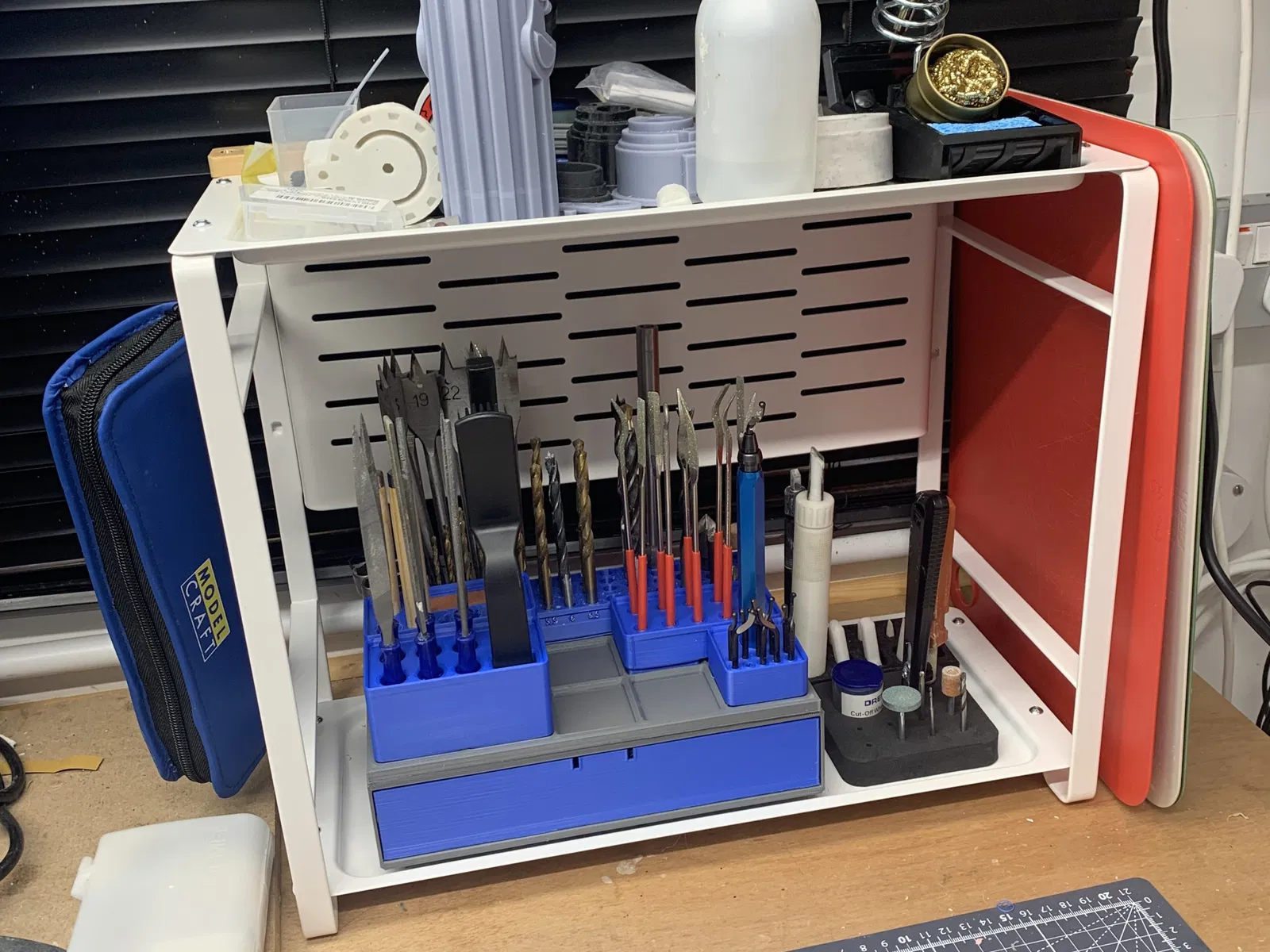 Tôi đang sử dụng một tổ chức bếp IKEA AVSTEG như một tổ chức bàn làm việc đa cấp và cần một phiên bản ngăn kéo đơn để phù hợp với khay dưới, đó cũng là lý do tôi đã thêm chân nâng 10mm vào đáy để phù hợp với khay kim loại lún.