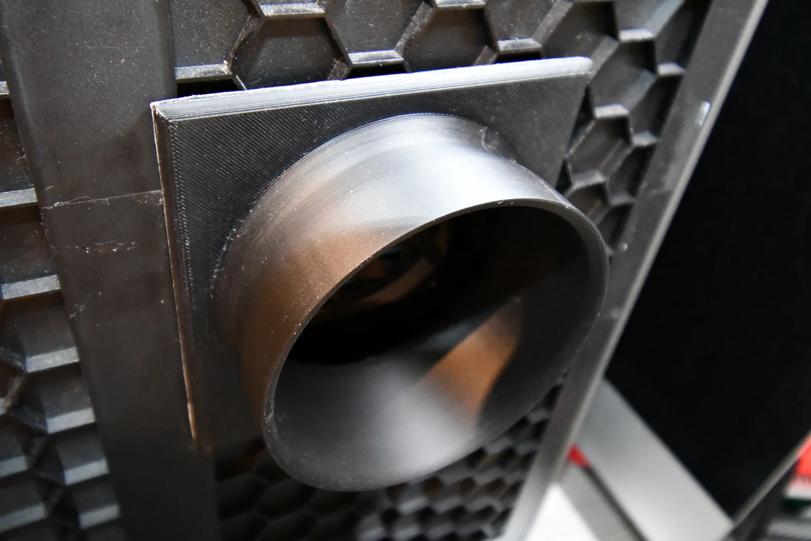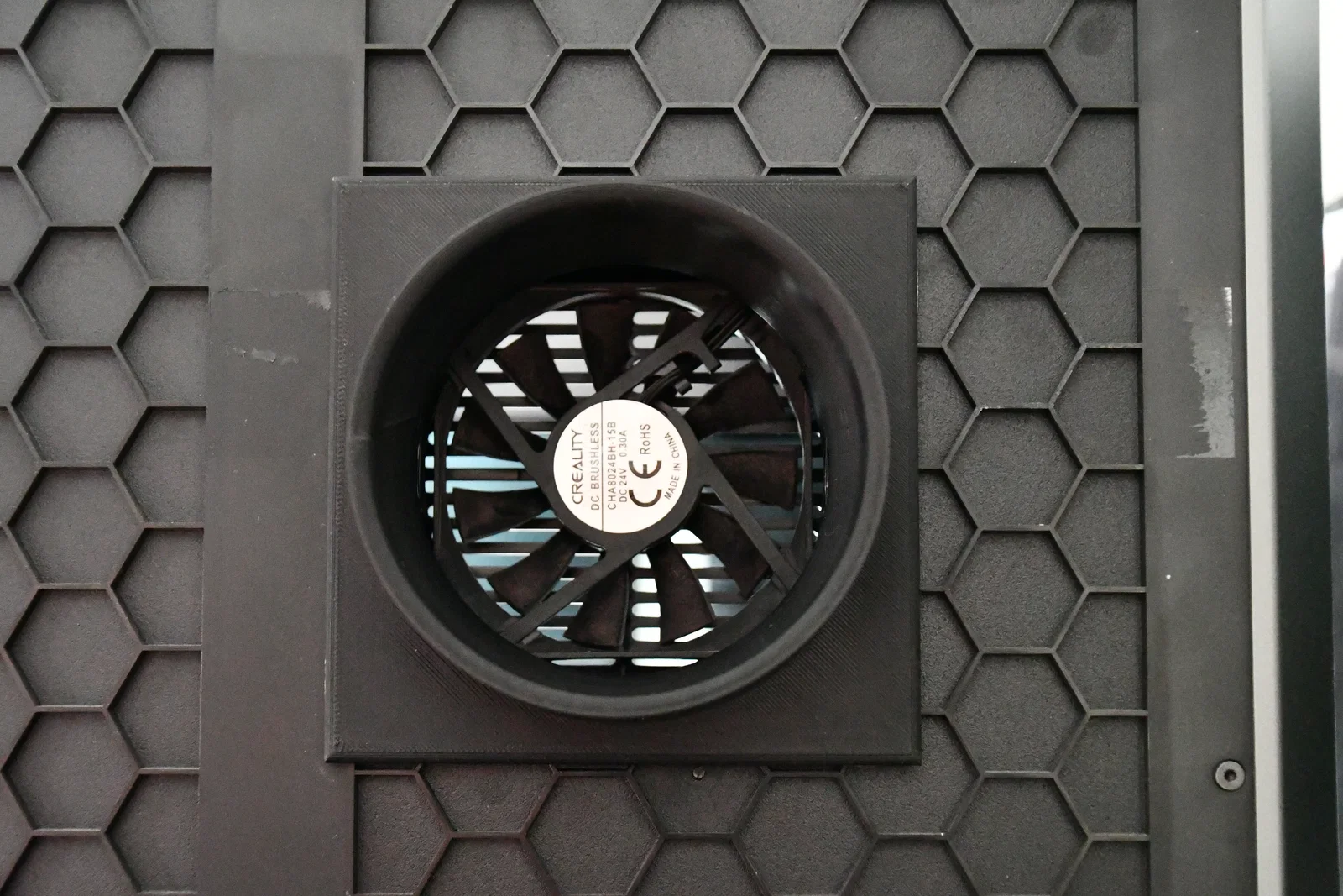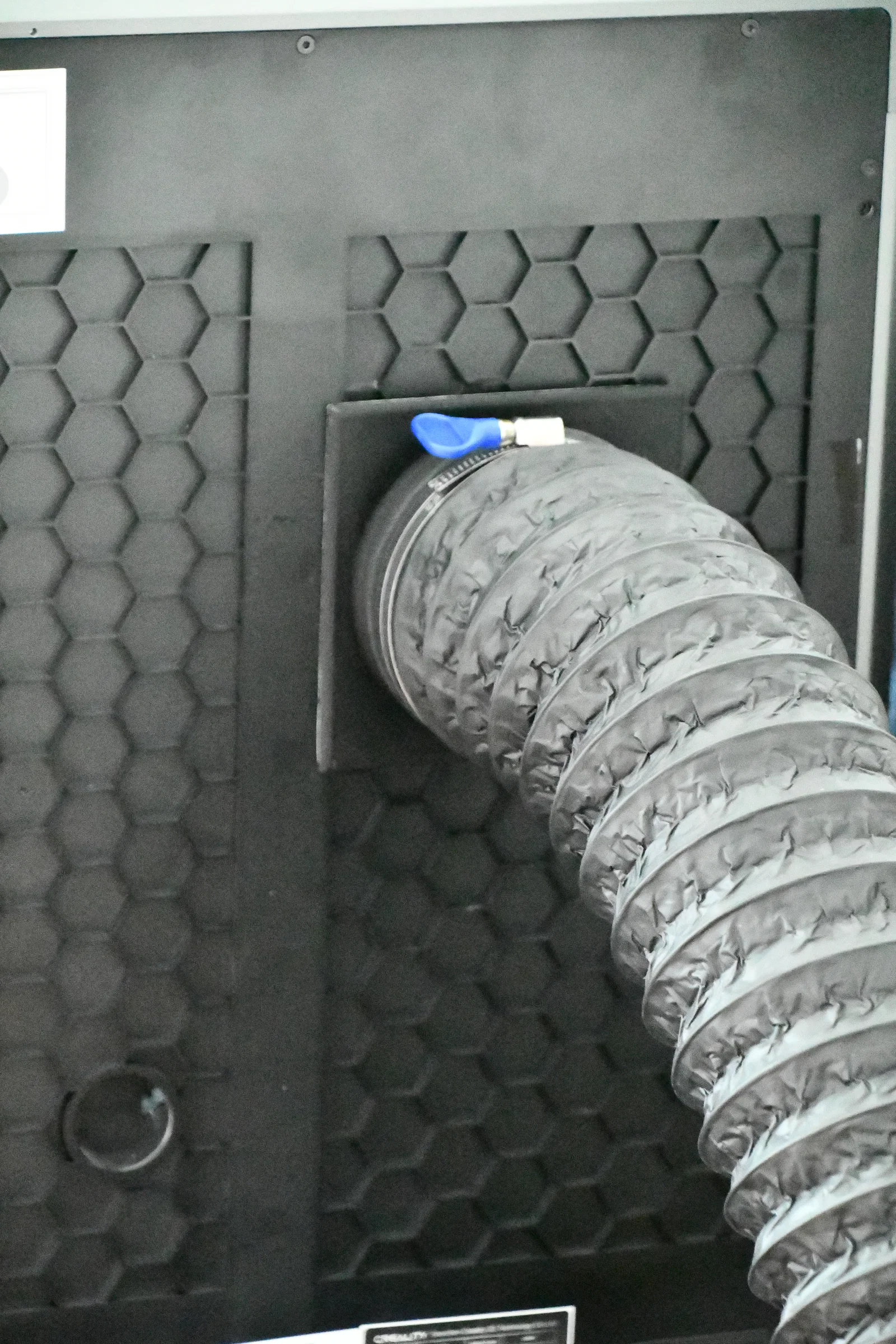 Khớp nối ống xả 4" cho Creality K1 Max, bám chassis rất chắc để giảm rò rỉ. Có hướng dẫn in (PLA, supports, infill 100%) và dán gasket tape giúp kín hơi, tối ưu xả khói/mùi.