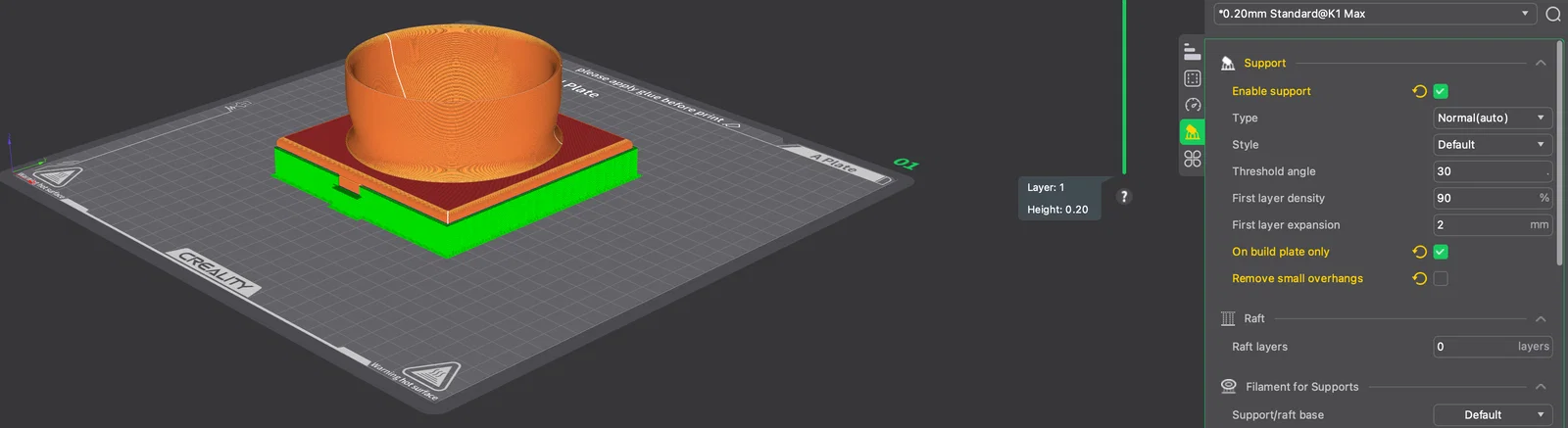 - Đặt hướng in như trong ảnh chụp màn hình slicer đính kèm