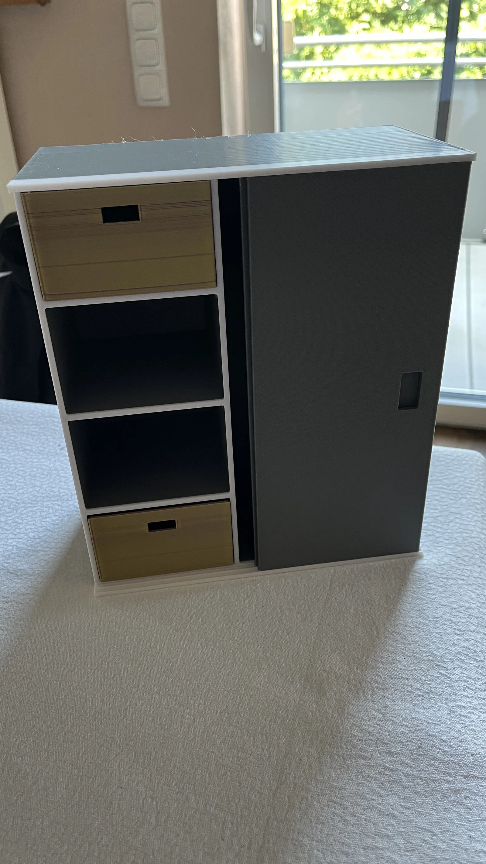 Khám phá mẫu tủ quần áo (closet) mini in 3D vô cùng đáng yêu, được thiết kế chuyên biệt để phù hợp với những người chơi có máy in 3D cỡ 230mm như Ender 3S1-Pro. Sản phẩm sở hữu cấu trúc thông minh với hệ thống ngăn kéo tiện lợi và cánh cửa tủ dạng lùa hiện đại, giúp bé yêu dễ dàng cất giữ trang phục, giày dép và các phụ kiện của búp bê Barbie một cách ngăn nắp. Đây là một dự án in 3D thú vị, vừa mang tính thực dụng cao, vừa là món đồ chơi trang trí ấn tượng cho bộ sưu tập của bé. Hãy cùng bắt tay in ngay chiếc tủ xinh xắn này với nhựa PLA để tạo nên không gian sống động cho những cô nàng búp bê của bạn.