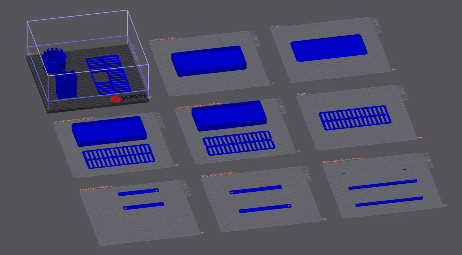 Bạn dùng slicer để xoay/hướng các mẫu cho đúng lên build plate (đa số đang chưa được orient đúng).