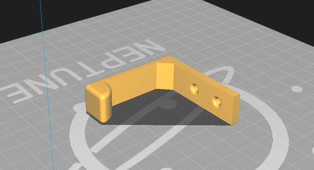 Đây là một chiếc móc đơn giản (kích thước 50x50x15) được thiết kế để treo nón bảo hiểm trong nhà để xe. Các lỗ bắt vít có đường kính 3,5mm. Phần vát ở điểm tiếp nối giúp tăng cường độ chắc chắn và ổn định cho móc khi chịu lực.