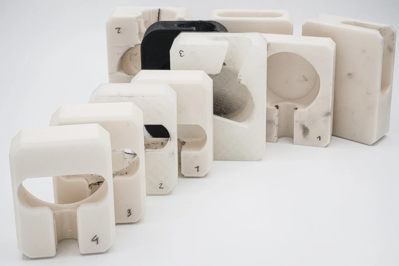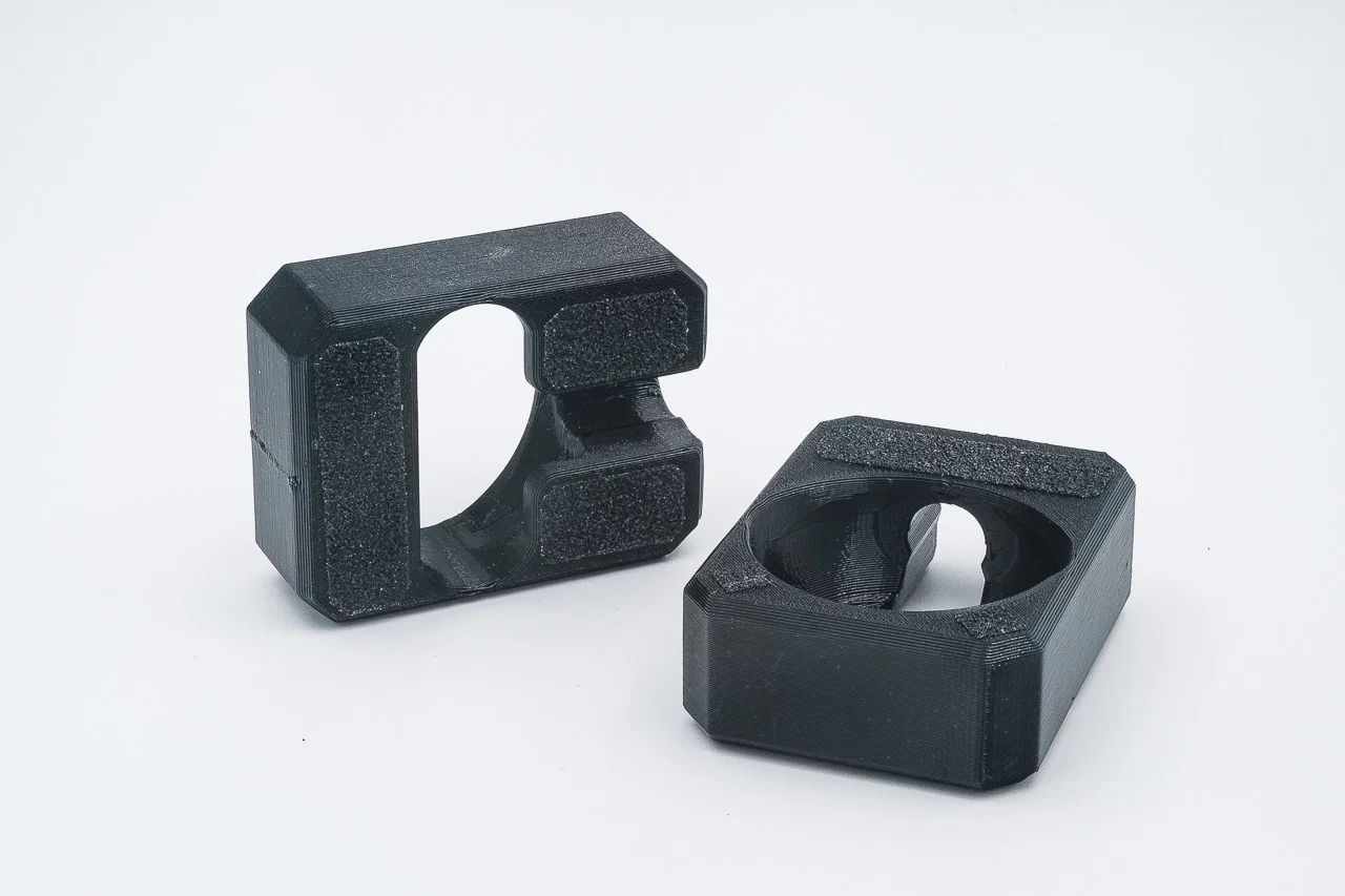 Mình in prototype bằng PLA nhưng cuối cùng chọn PETG và ASA cho cặp dùng chính. ASA cần chỉnh tolerance rộng hơn một chút (hoặc bạn có thể in model mặc định ở 105%). Mình dán thêm grip tape để đạp chắc chân hơn.
