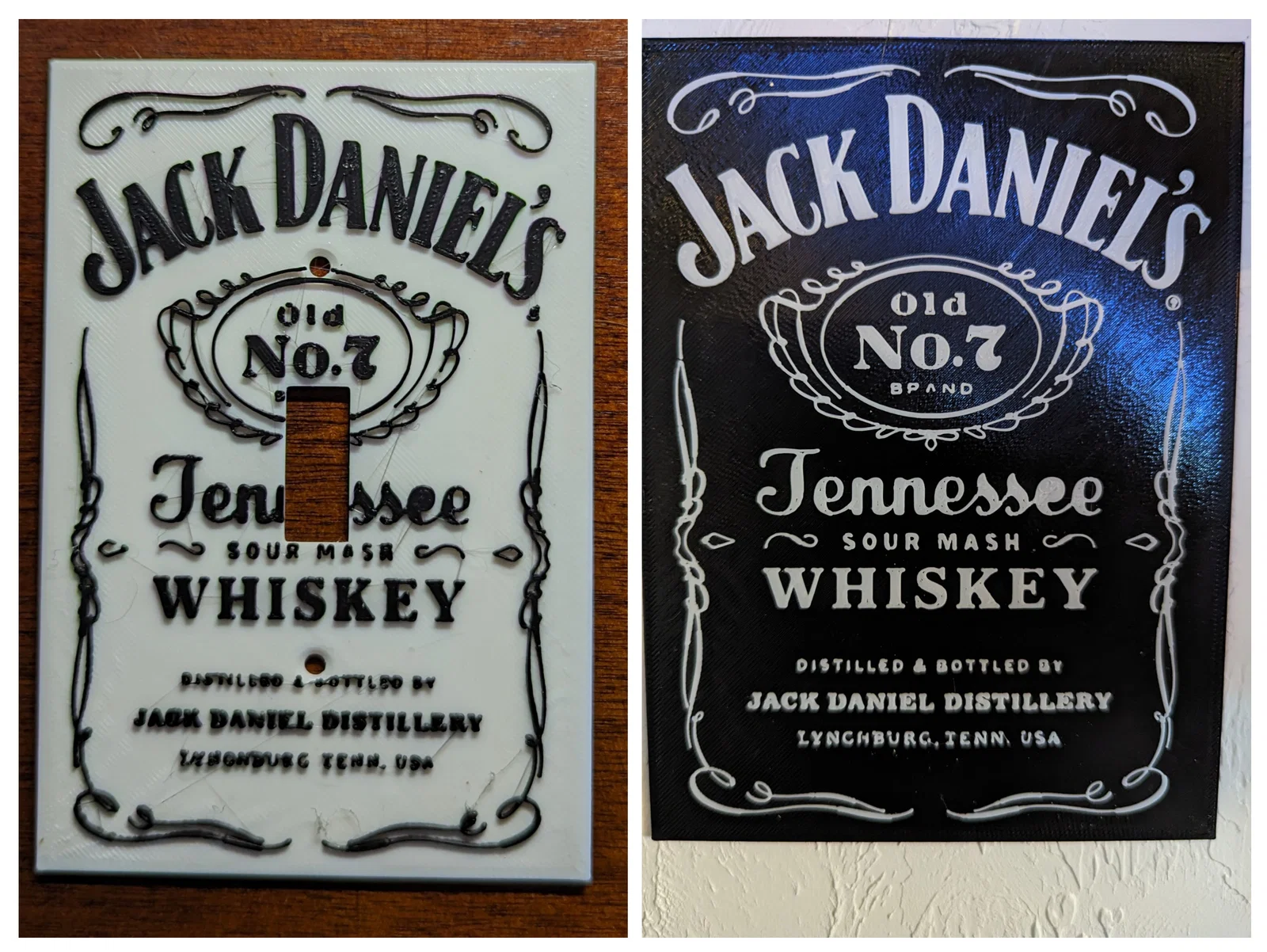 Bảng hiệu Jack Daniels Old No.7 Tennessee Sour Mash cỡ nhỏ, in nhanh để treo tường/để bàn, có hướng dẫn đổi màu. Kèm phiên bản nắp che công tắc đèn; có thể dùng làm bảng hiệu có đèn phía sau.