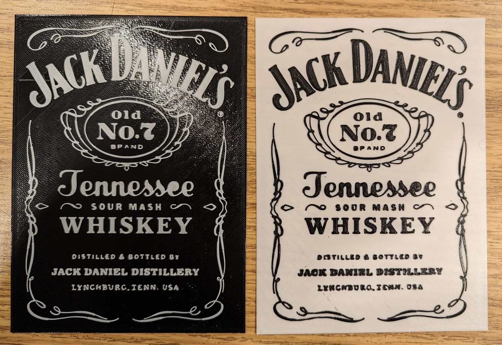 Kích thước 117mm x 159mm. In layer height 0.2 và đổi màu ở 0.6mm. In đen trên nền trắng hoặc trắng trên nền đen.