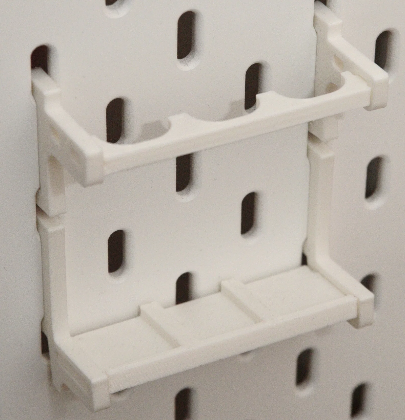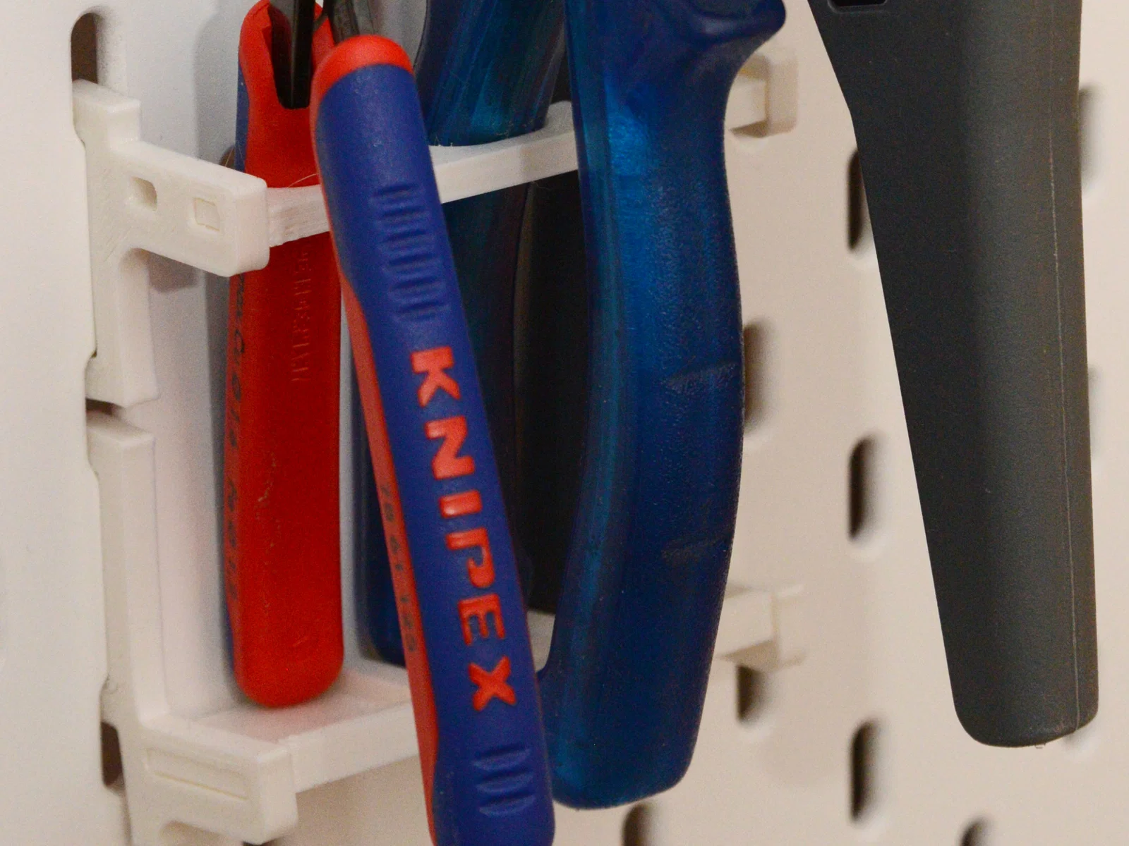 Giá treo kìm nhỏ gọn cho pegboard như IKEA Skadis hoặc UPPSPEL, để được 3 cây kìm theo thiết kế vuông góc, tiết kiệm diện tích. In không cần supports, khuyến nghị PLA và 20% infill.