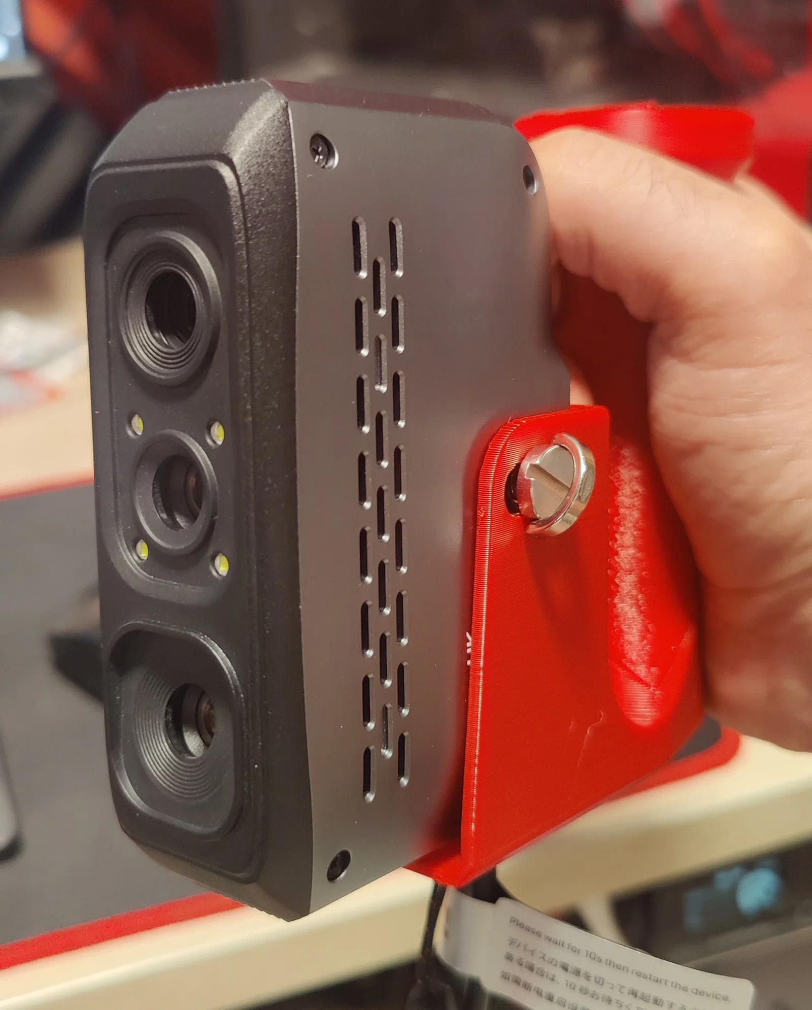 Mẫu tay cầm (handgrip) tương thích với máy quét 3DMAKERPRO MOOSE. Dùng con ốc (screw) đi kèm trong hộp để gắn vào máy, và có thể chỉnh handle ở 2 vị trí như hình minh hoạ.