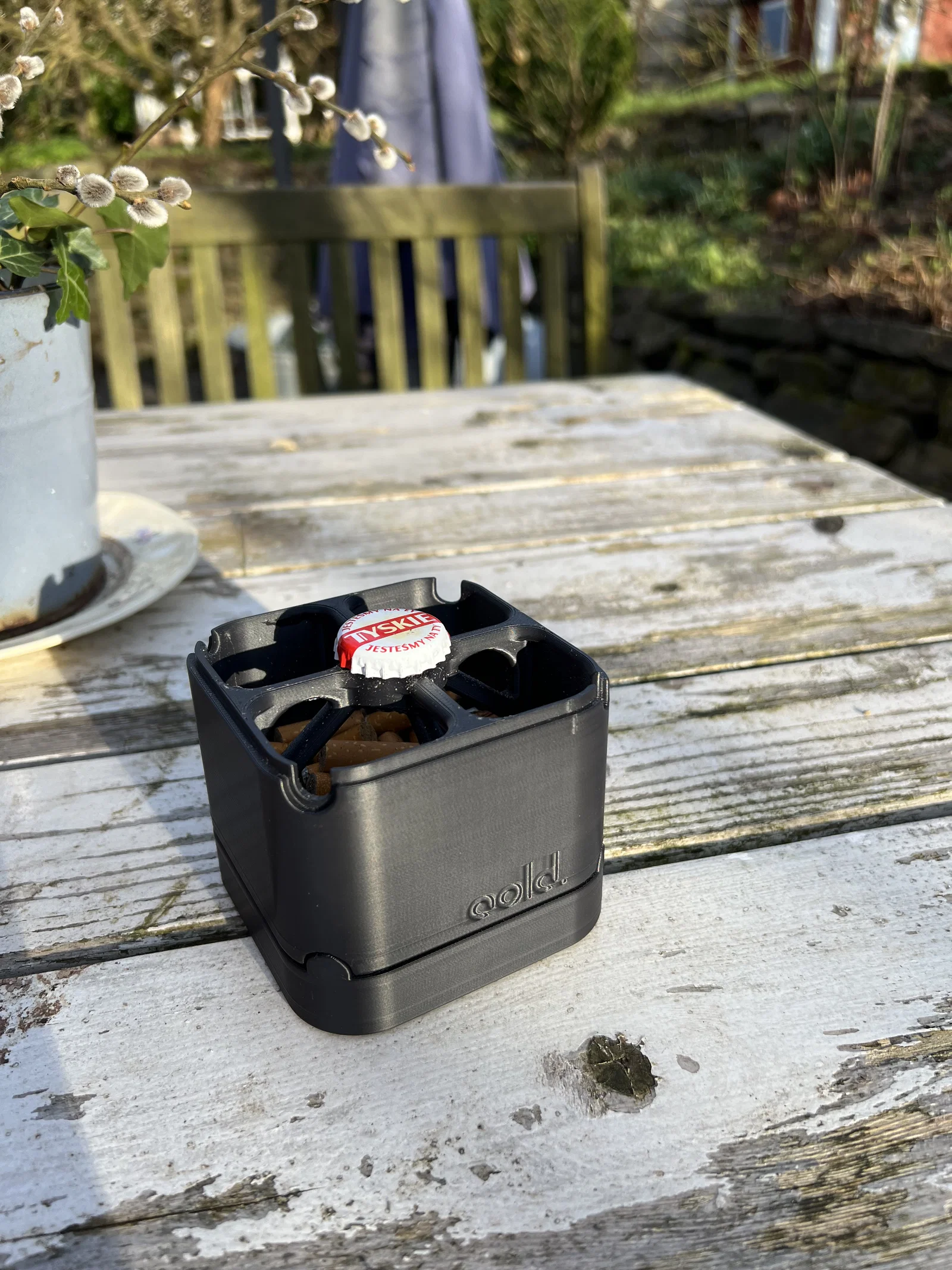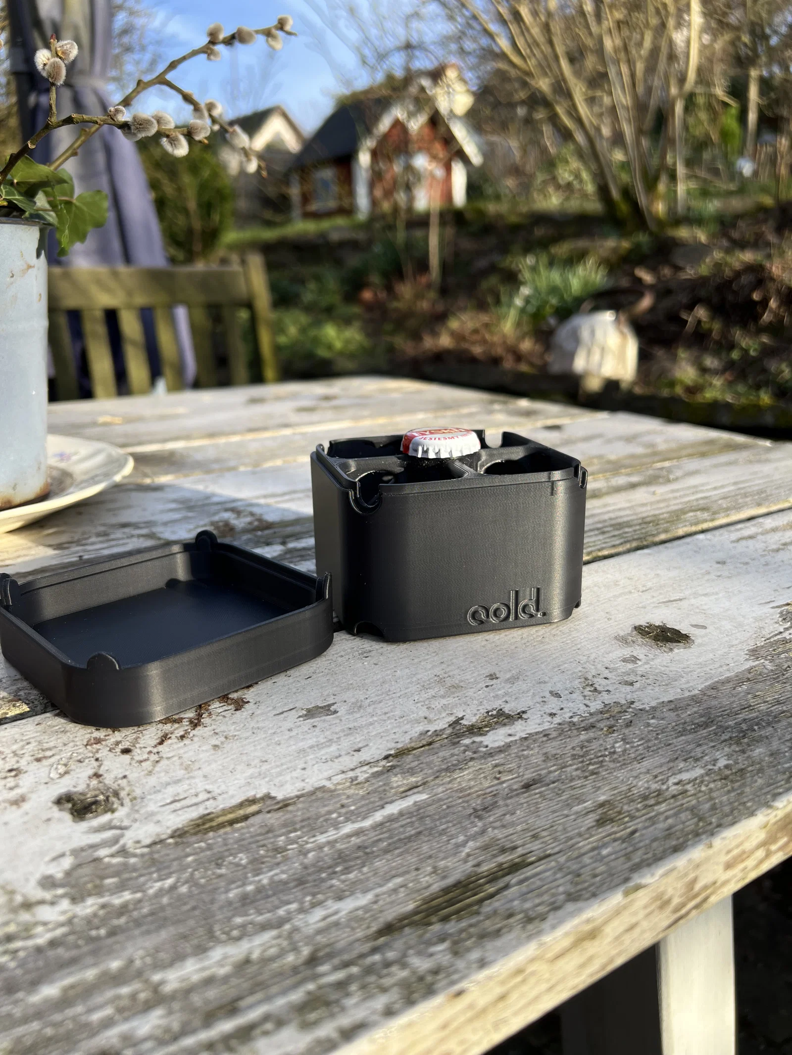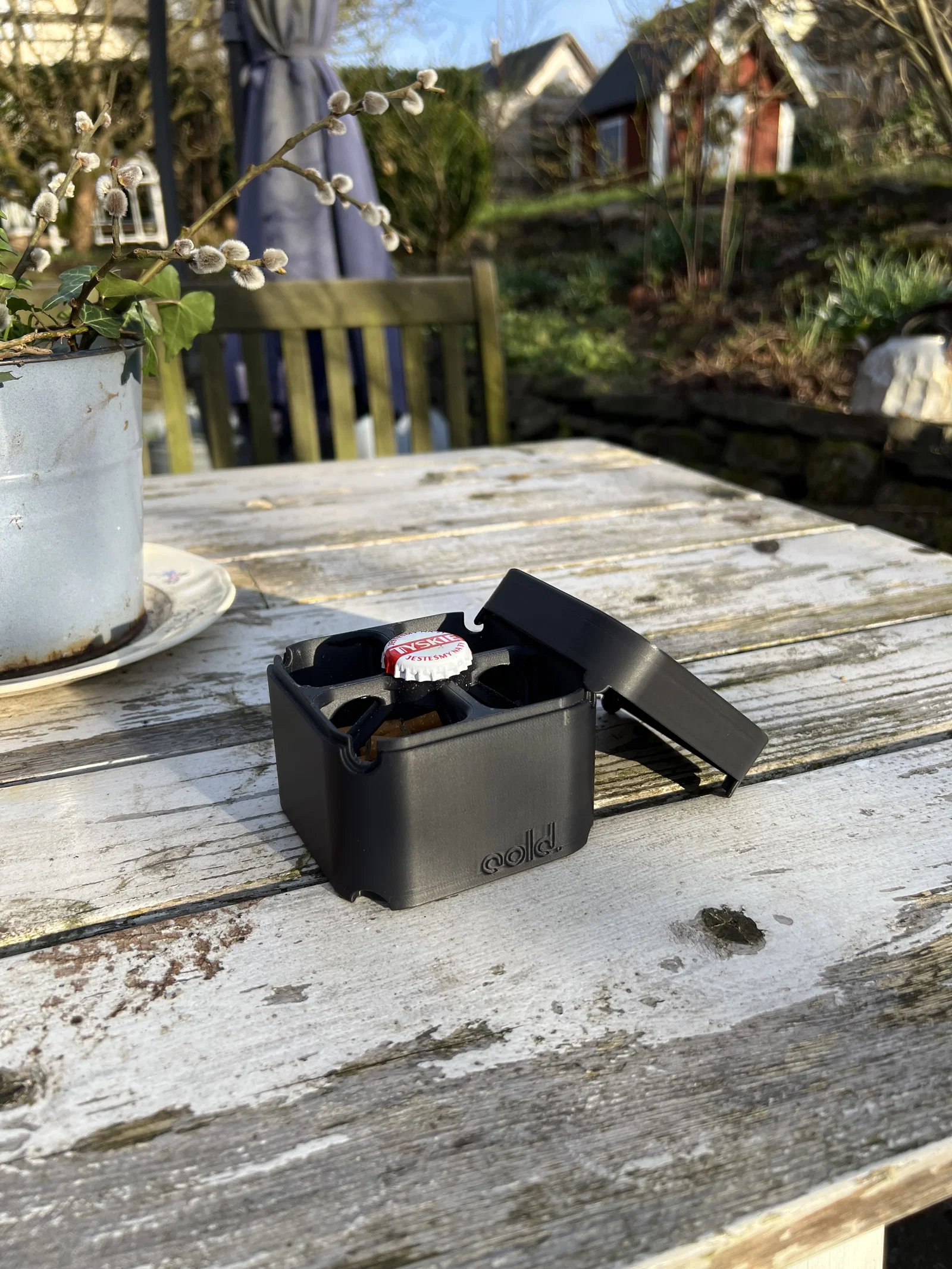 Một mẫu gạt tàn tiện dụng được thiết kế kèm theo một nắp chai để bạn dập tắt tàn thuốc dễ dàng. Thiết kế tối ưu, không cần in support, khuyến khích sử dụng các loại nhựa chịu nhiệt tốt như ASA.