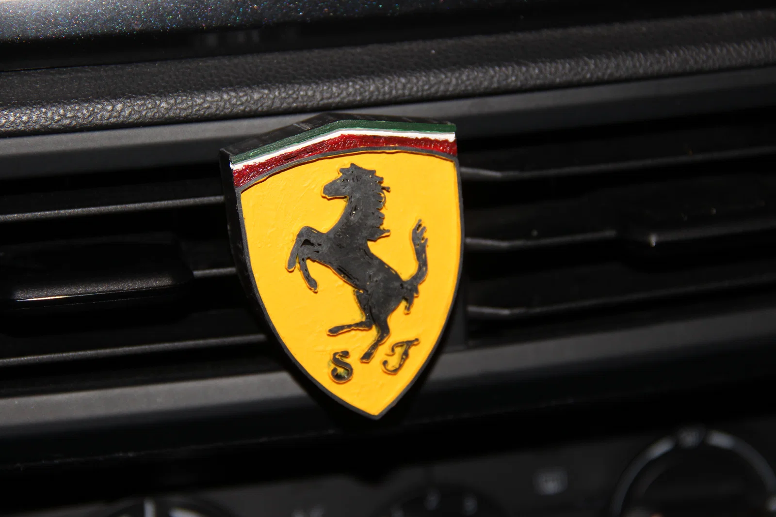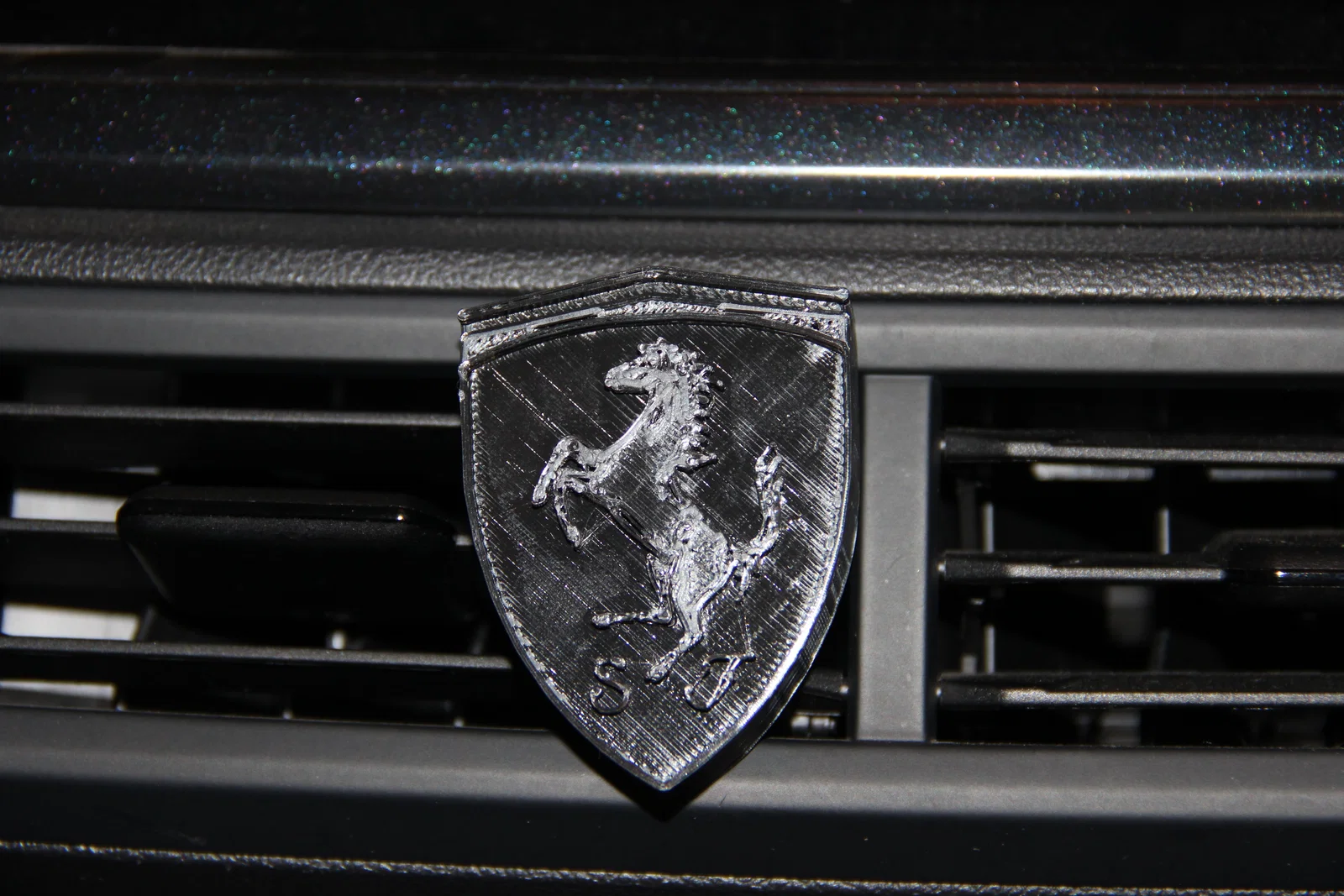 Mẫu clip/kẹp logo Ferrari để gắn lên khe gió (air vent) trên ô tô. In rất nhanh, tốn chỉ vài gram vật liệu nhưng hiệu ứng trang trí nổi bật, hợp cho fan Ferrari và người mê siêu xe Ý.