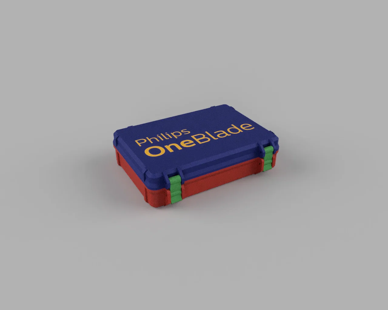 Bản remix hộp đựng du lịch cho Philips/Norelco One Blade, tối ưu để vừa Model QP2824/30 và chừa thêm không gian cho phụ kiện. Có 2 nắp (có chữ/không chữ), kèm file STEP, Fusion 360 và 3mf multicolor.