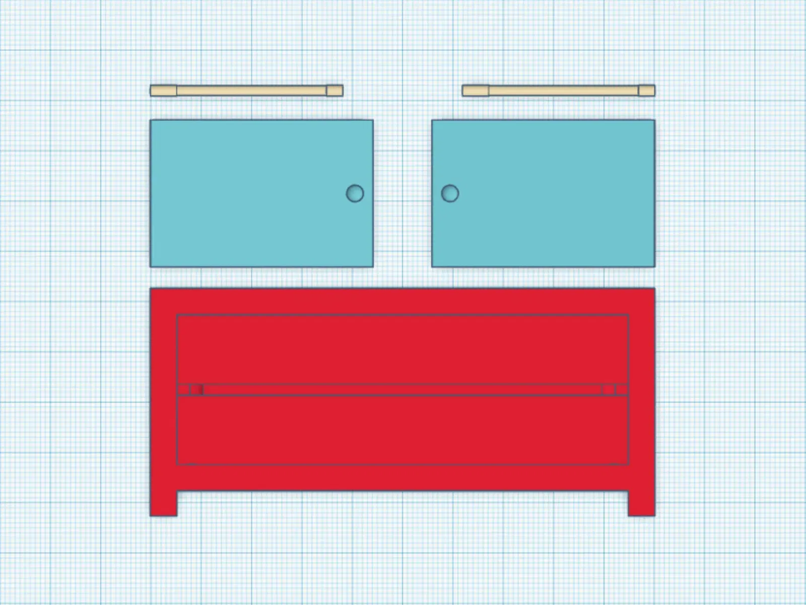 Mẫu bàn TV/tủ cho búp bê với cửa có thể mở.