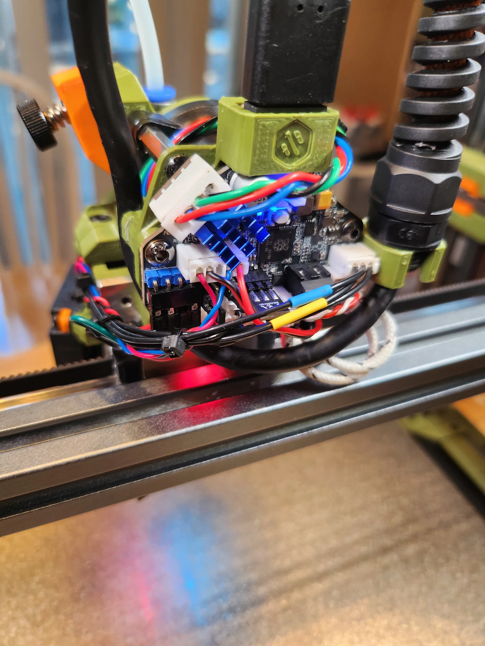 Tôi muốn có một cái ngàm hoàn hảo cho board Mellow Fly SHT36 V3 của mình, có kèm giá đỡ PG7. Sau nhiều lần chỉnh sửa, tôi đã làm ra bản này, bao gồm cả kẹp cáp CANBUS (hơi khít một chút) và vị trí để đi dây rút giữ cáp đùn nhựa.