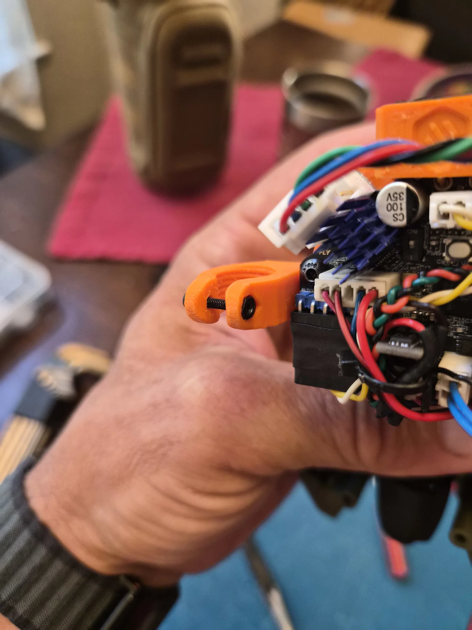 Tôi cũng nhận thấy ốc siết cáp bị vướng vào bu lông cắt sợi nhựa kể từ khi lắp Xol-Metrix. Vì vậy, tôi đã thiết kế lại ngàm để chuyển đầu PG7 sang bên phải, đồng thời vẫn giữ bộ phận siết ren.