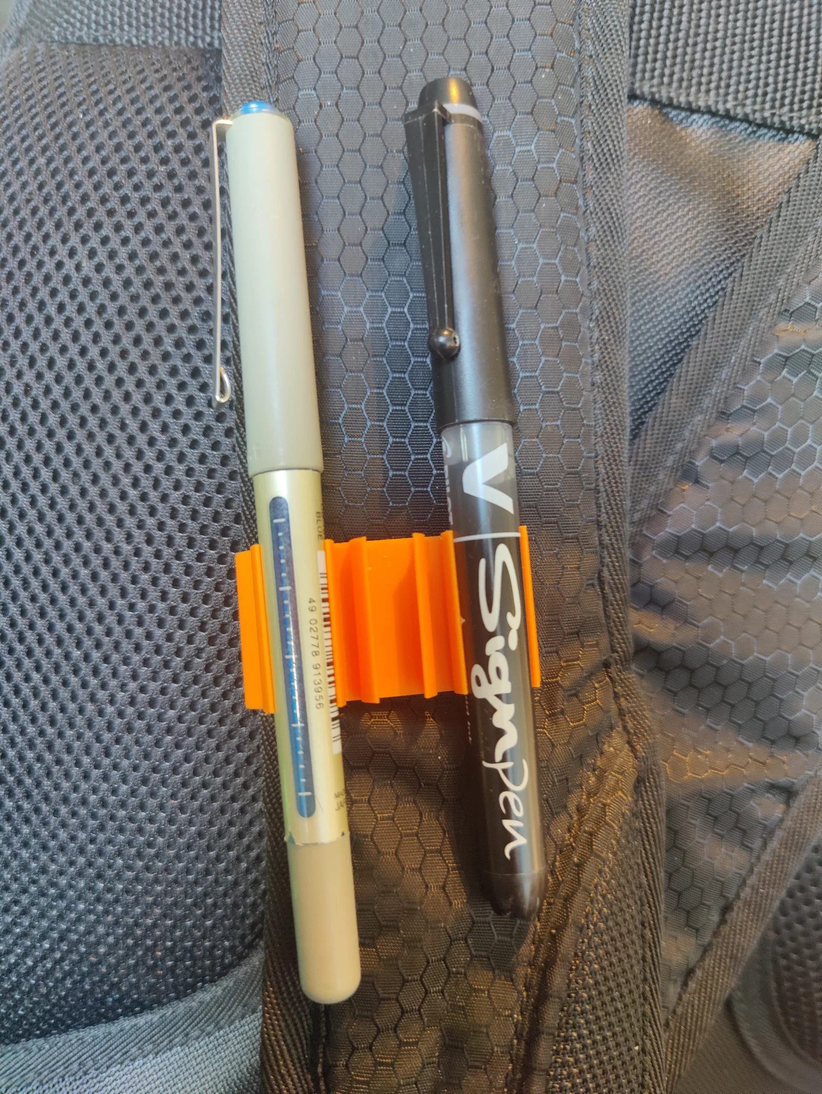 Bạn có bao giờ gặp khó khăn khi phải lục lọi cả cái ba lô lộn xộn chỉ để tìm một cây bút lúc cần ghi chép gấp không? Dù bạn đang ngồi trên lớp, đi dạo, mua sắm hay đang cắm trại, bạn sẽ luôn có sẵn bút bên mình. Với chiếc kẹp bút này, bạn có thể mang theo tối đa ba cây bút ngay trong tầm tay. Nó được thiết kế để kẹp trực tiếp vào quai đeo vai của ba lô một cách dễ dàng. Phần lưng của kẹp được thiết kế để vừa với cả những quai đeo dày. Sản phẩm giữ được các loại bút từ cỡ trung đến lớn vì đường kính trong của kẹp là 10 mm (ví dụ: bút Bic thông thường có đường kính khoảng 8 mm). Cập nhật: Đã thêm phiên bản Pen Holder For Backpack Strap 8.5mm dành cho các loại bút nhỏ hơn. Mình chưa in thử phiên bản này. Hướng dẫn in: Hãy in với một trong các cạnh nằm xuống như hình minh họa. Mẫu trong hình được in trên máy Bambu P1S với các thông số: Filament: Bambu PLA Basic Infill: 15%, Gyroid Supports: Không cần * Adhesion: Không cần