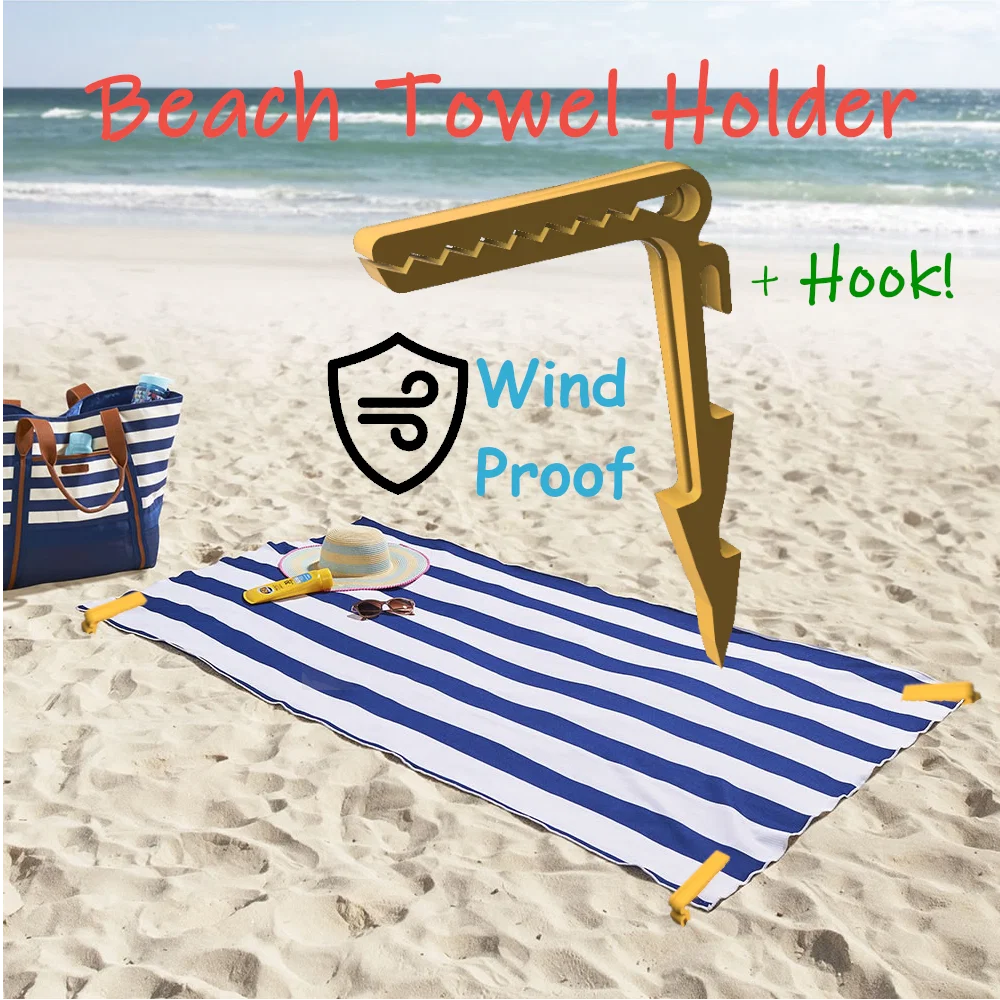 Đây là kẹp giữ khăn đi biển được thiết kế để cắm xuống cát, giúp khăn của bạn không bị gió thổi bay! Nhờ có thêm móc treo, bạn cũng có thể dùng nó như một chiếc cọc cố định.