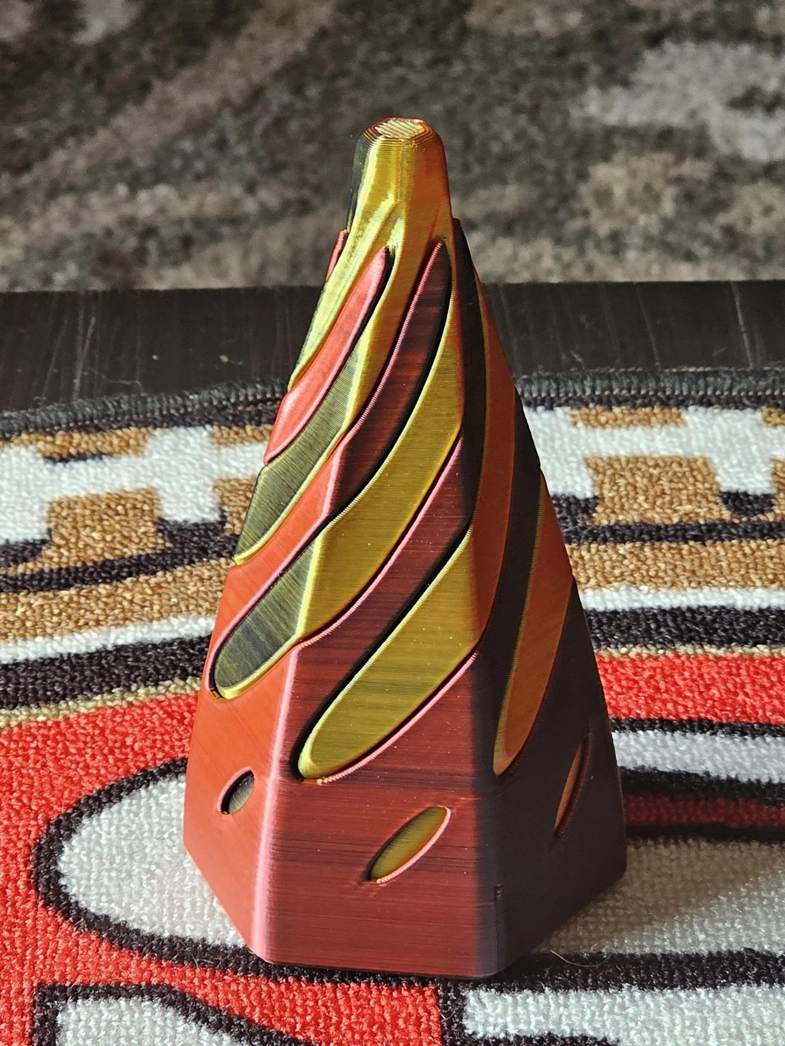 Đây là một mô hình tháp lục giác xoắn cao 6 inch. Bạn có thể in hai phần riêng biệt hoặc in gộp lại. Đừng thu nhỏ kích thước quá nhiều nếu không các khe hở sẽ không trượt được.
