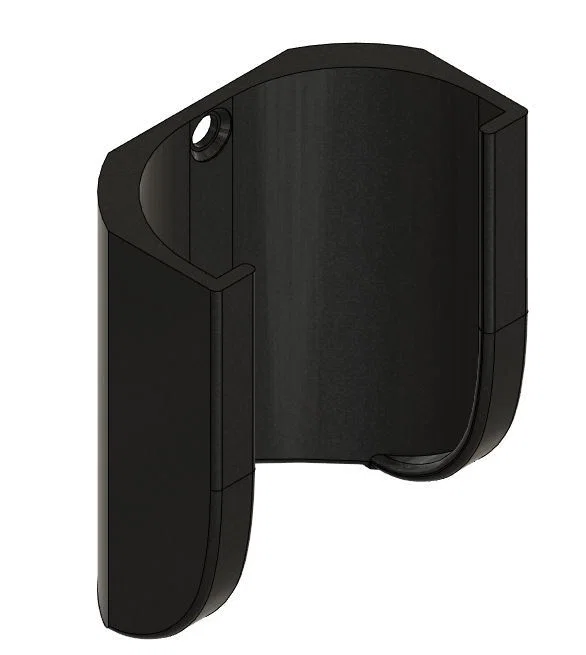 Giá đỡ remote TV Samsung đơn giản, dán lên tường hoặc bề mặt phẳng bằng Gorilla mounting tape. Thiết kế có thêm 2 lỗ 4mm kèm chamfer 1mm để bắt vít khi cần.