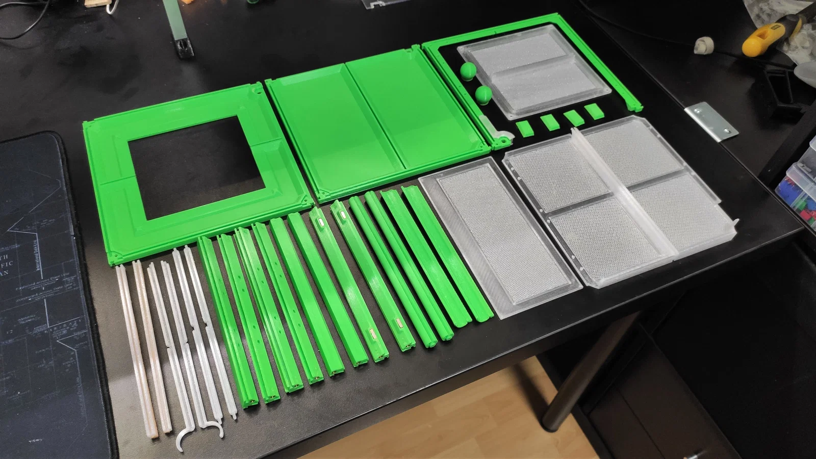 - 1× plexiglass cho vách sau (184,0 × 90,0 × 2 mm)