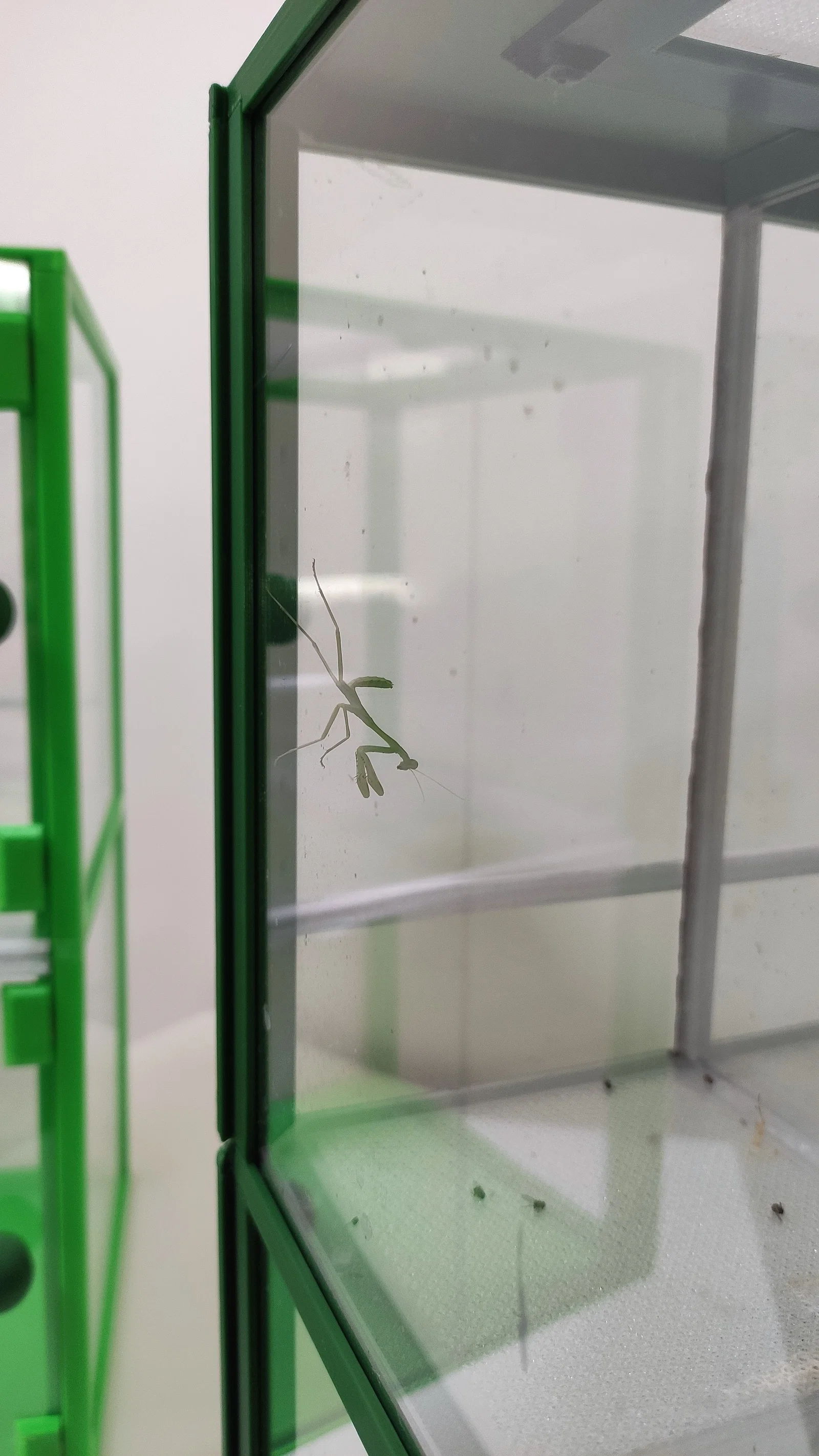 Lắp tấm mesh phía sau với mặt nhẵn quay vào bên trong insectarium. Nếu không, nó sẽ không chạm vào vách ngăn plexiglass và tạo ra khe hở lớn hơn.