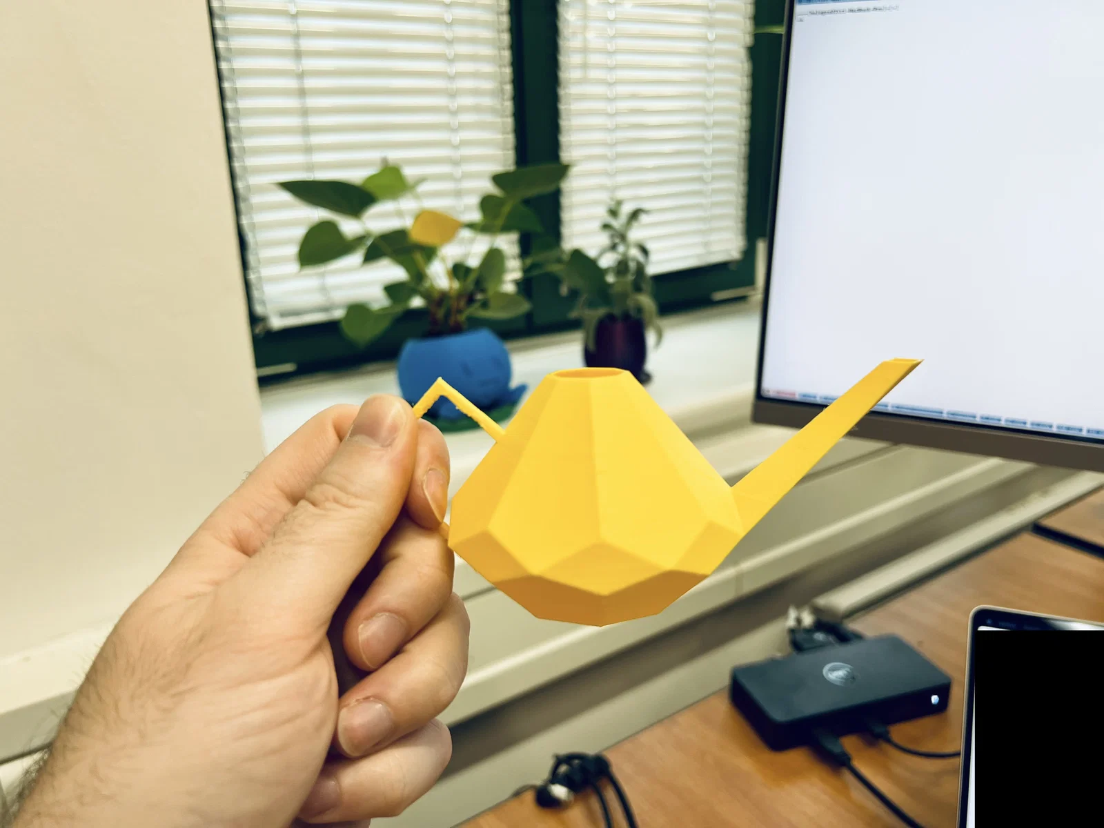 Đây là một cái bình tưới cây nhỏ (bạn có thể scale lên nếu muốn) với hình dáng kiểu kim cương. Kích thước xấp xỉ 14 cm x 7.4 cm x 6 cm.