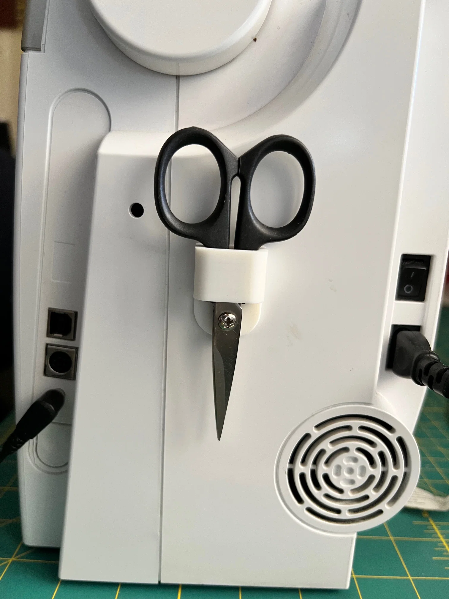 Vợ mình hay để lạc cái kéo nhỏ dùng để cắt chỉ. Mình làm mẫu đơn giản, dễ in này để cô ấy có thể cất kéo trong một cái sheath gắn ngay trên máy may, đúng chỗ cần dùng. Sheath có thể dán lên hông, mặt trước, hoặc bất kỳ vị trí nào trên máy may bằng băng keo xốp hai mặt (double-sided foam tape). Mẫu này in không cần supports và các thông số in cũng không có gì quá quan trọng.