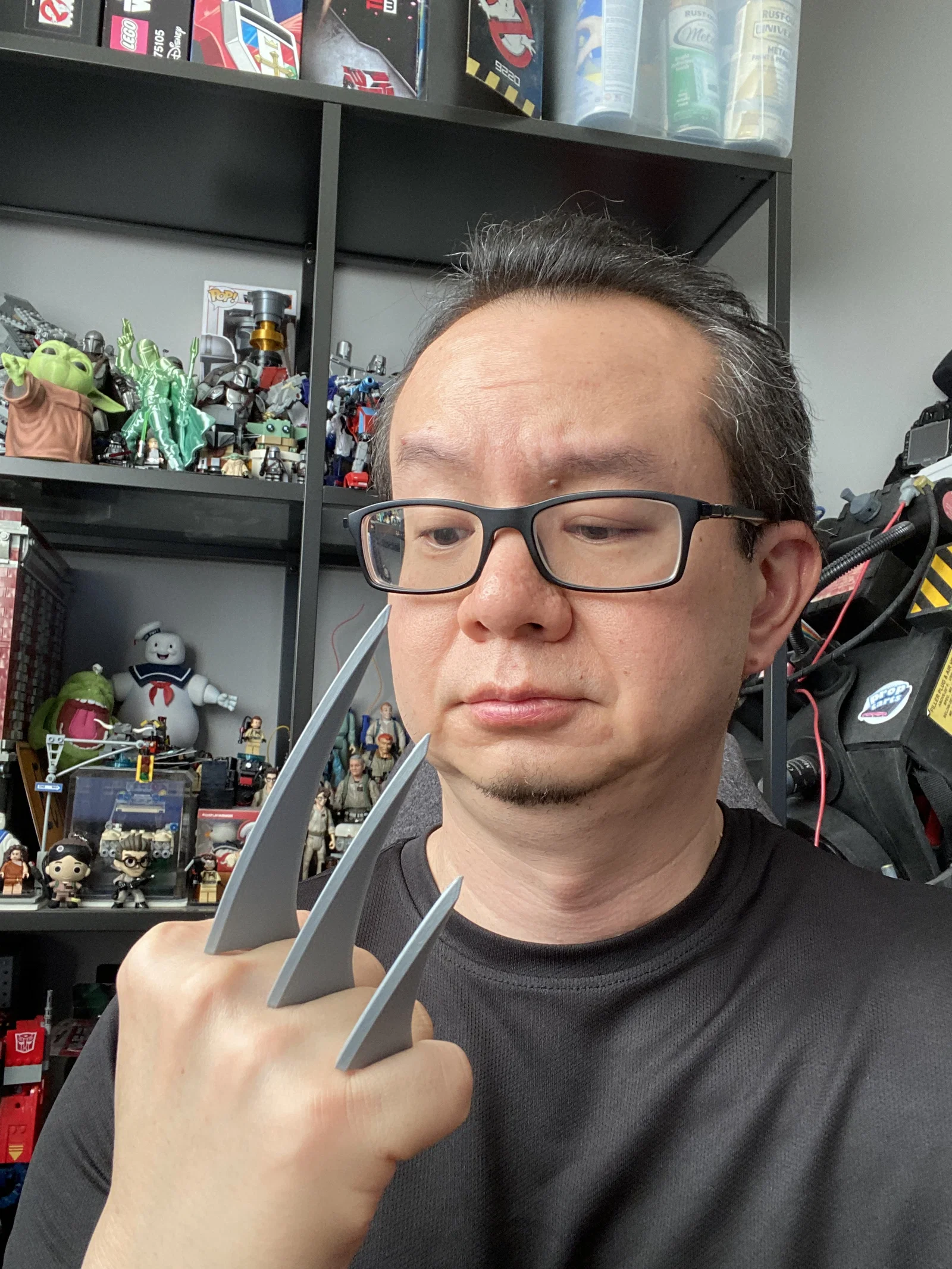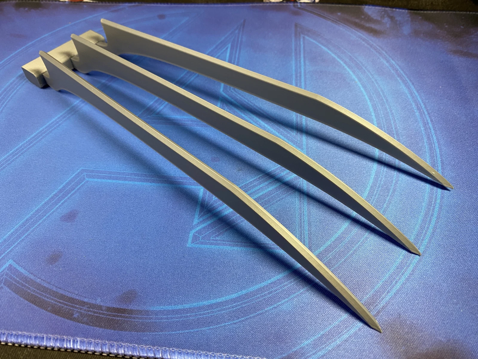 Mẫu Wolverine Claws kiểu móng thò ra giữa các khớp ngón, không có gờ chụp lên knuckle. Lắp blades vào grip dạng friction fit (có thể thêm superglue). Gợi ý layer height và nhiều bản update, gồm grip lỗ rộng hơn.