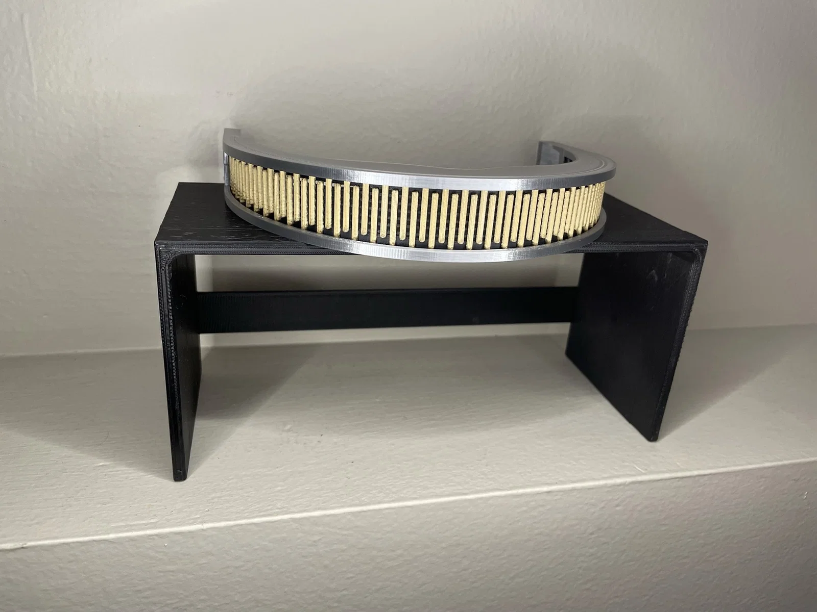 Mình muốn làm một prop VISOR của TNG với phần grill một khối dễ in, thay vì phải gắn rất nhiều thanh rod. Bản này có grill dạng dẻo (flexible) in phẳng (flat) và gài vừa khít vào các rãnh (grooves) để cố định. Vậy nên sơn rất tiện, mà cũng cho phép bạn in nhiều màu nếu muốn. Mình dùng silk PLA cho các phần kim loại.