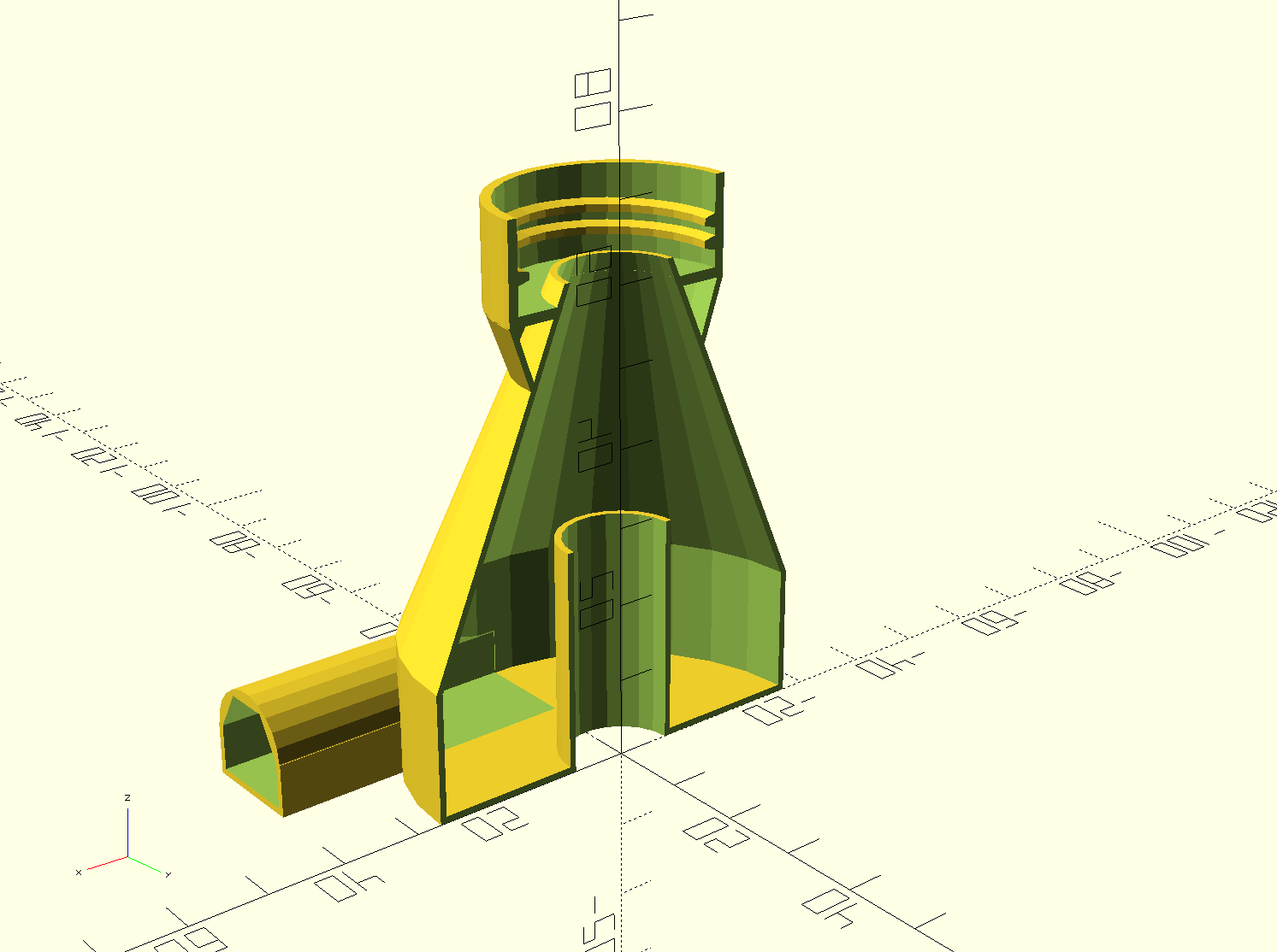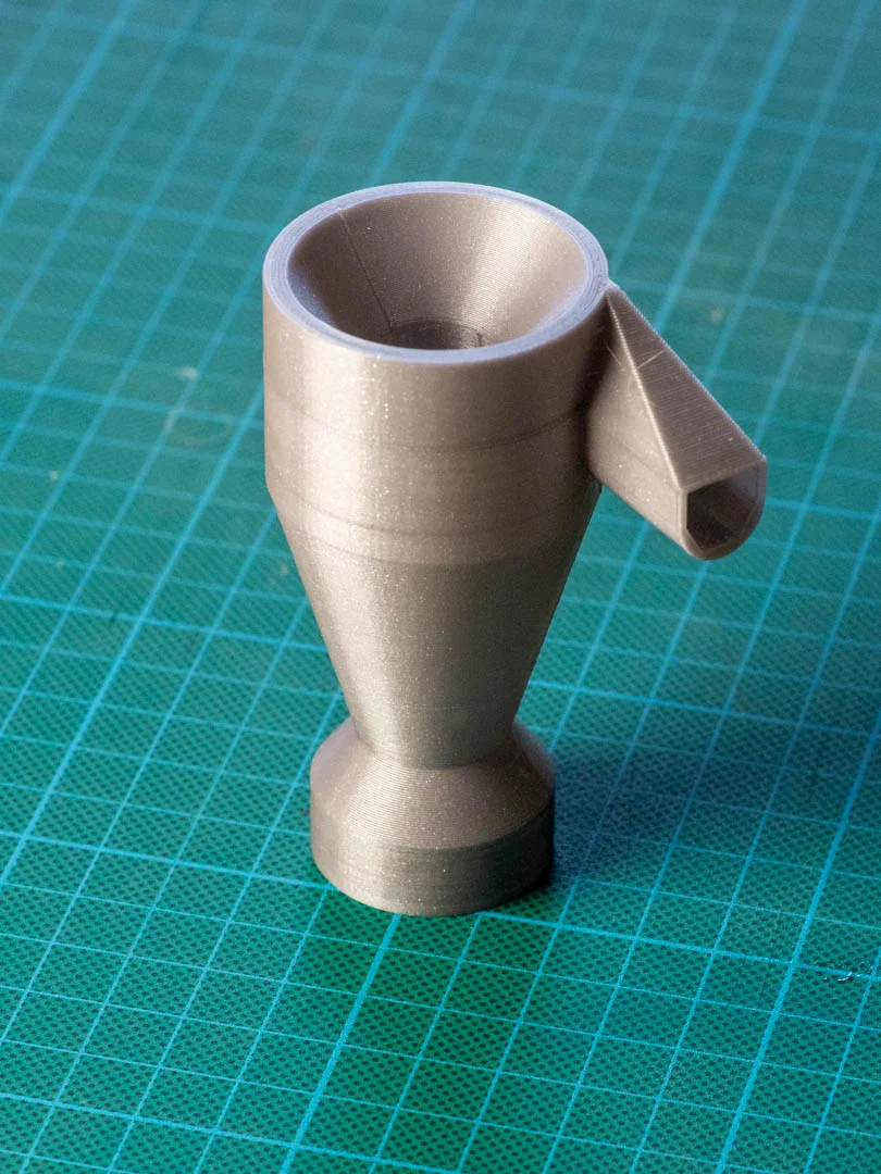 Airbrush cyclone giúp hứng và lọc phần sơn/nước khi purge hoặc vệ sinh airbrush. Bản 2.1 thu nhỏ đường kính, thêm funnel phía trên; đã test với nozzle 0.4mm ở 2.5bar và nước thường, lọc ~98%.