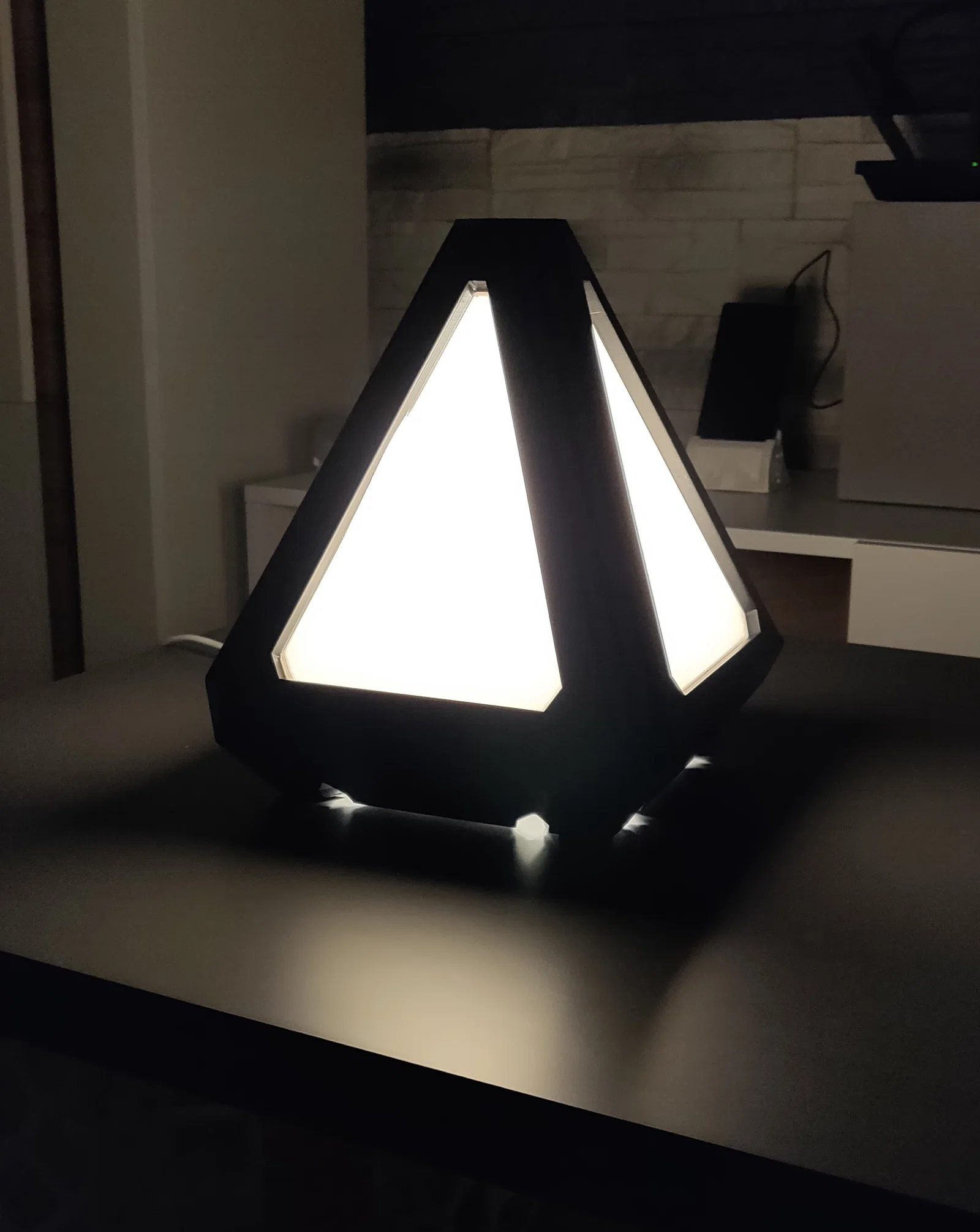 Mẫu đèn dạng kim tự tháp cho đui E14, ưu tiên dùng bóng LED. Đế in không cần support, các panel in riêng và lắp không cần phần cứng thêm. Phù hợp bàn in 220x220, kèm file nguồn để bạn tùy chỉnh.