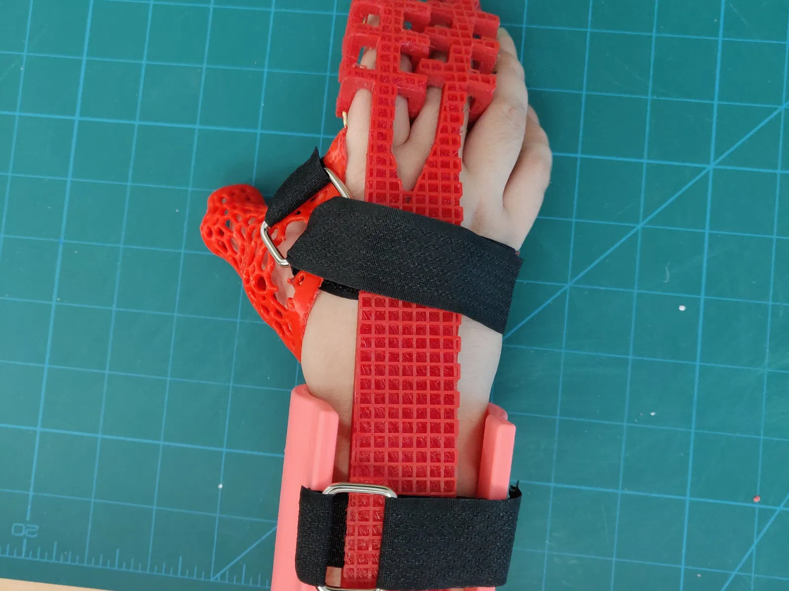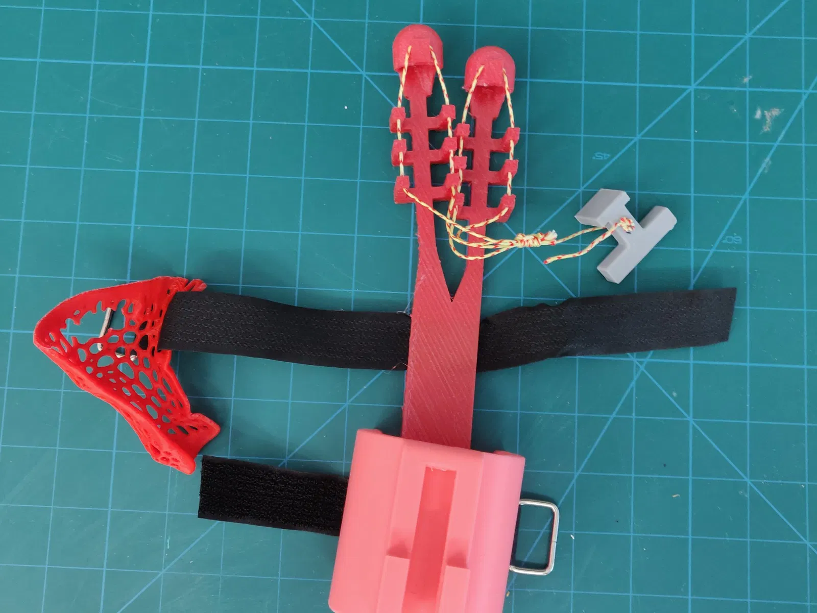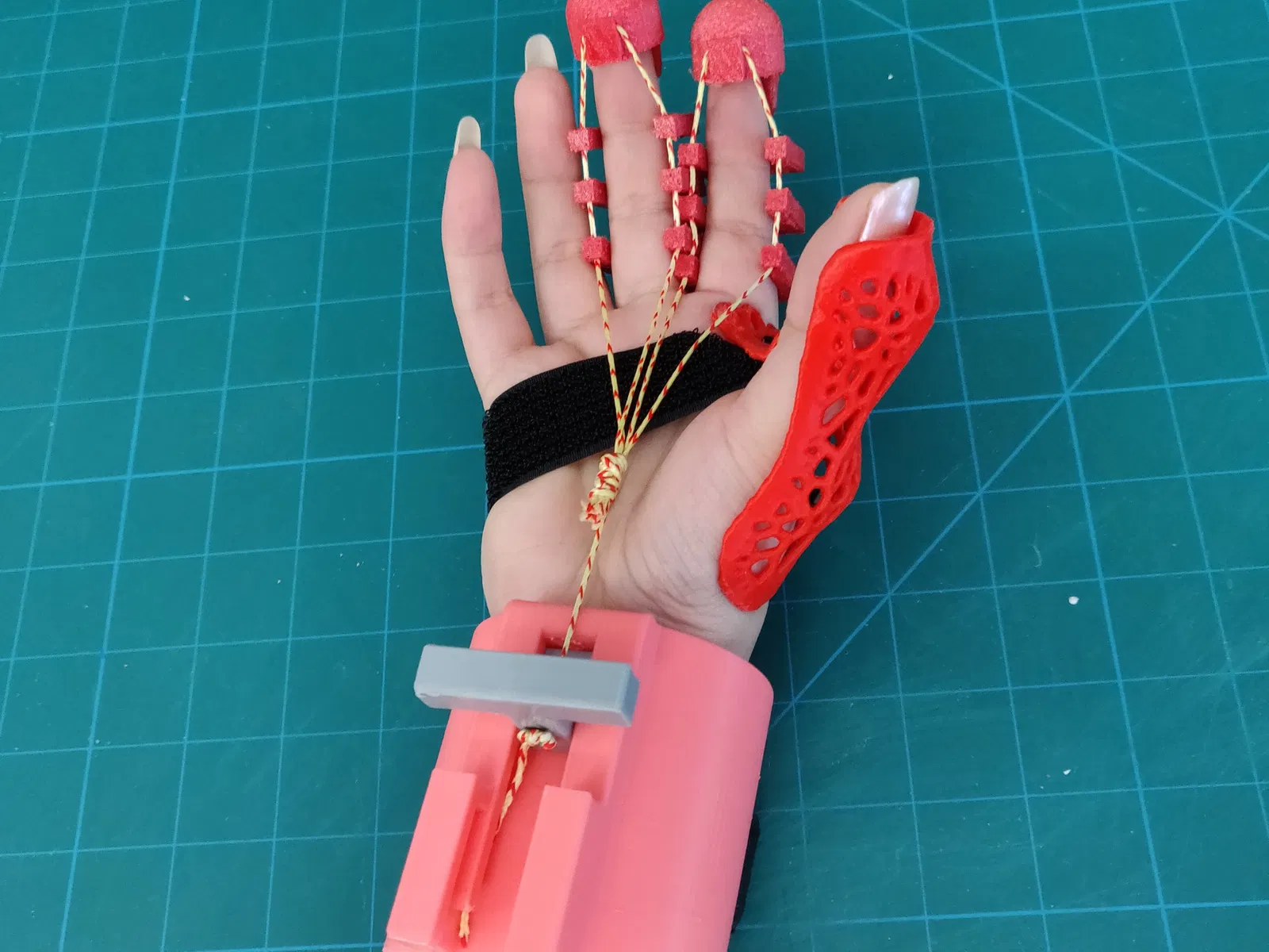 Mục tiêu của chúng tôi trong quá trình chế tạo mẫu là thu được các bộ phận có thể chịu được sự mài mòn và các lực tác động lên thiết bị trong khi sử dụng. TPU đã được sử dụng cho Đơn vị Ngón tay, thiết kế của phần này và tính linh hoạt của vật liệu sẽ cho phép những người có kích thước tay khác nhau có thể đeo nó. Để chế tạo mẫu nhanh, PLA đã được sử dụng cho đơn vị Cổ tay và nẹp Ngón tay, và PETG đã được sử dụng cho tay cầm kéo để tăng cường độ bền của nó.