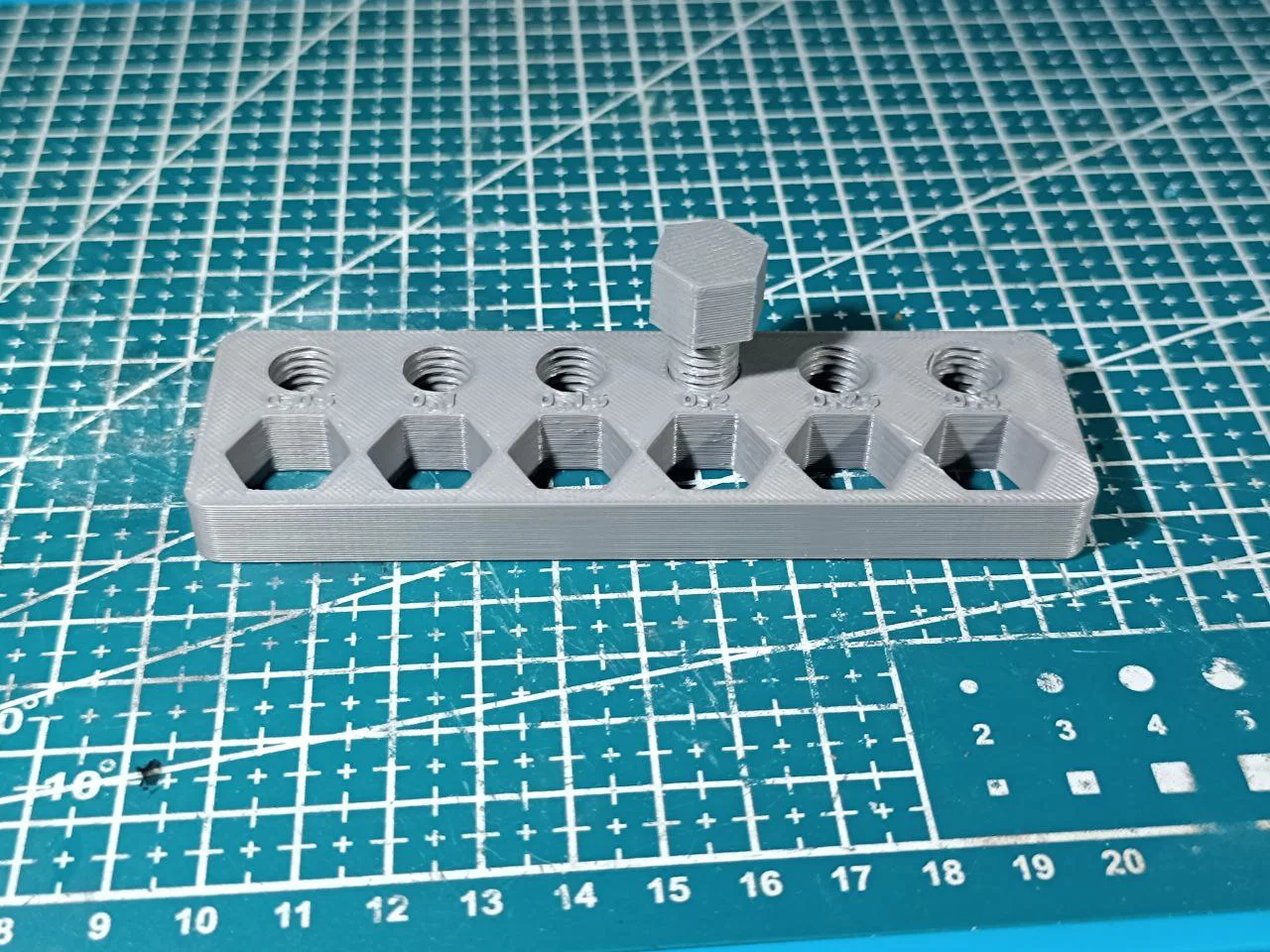 Cách sử dụng rất đơn giản, bạn chỉ cần in mô hình này với các thiết lập slicer hiện tại mà bạn đang dùng. Sau khi in xong, hãy lấy con ốc đi kèm và thử vặn vào các lỗ ren tương ứng trên thanh kiểm tra. Bạn sẽ thấy ngay mức dung sai nào là vừa vặn nhất, mức nào quá chặt khiến không thể vặn vào, hoặc mức nào quá lỏng lẻo. Điều này giúp bạn hiểu rõ hơn về khả năng đùn nhựa của máy in, từ đó điều chỉnh thông số "Horizontal Expansion" hoặc "Flow Rate" trong phần mềm slicer một cách hiệu quả nhất.