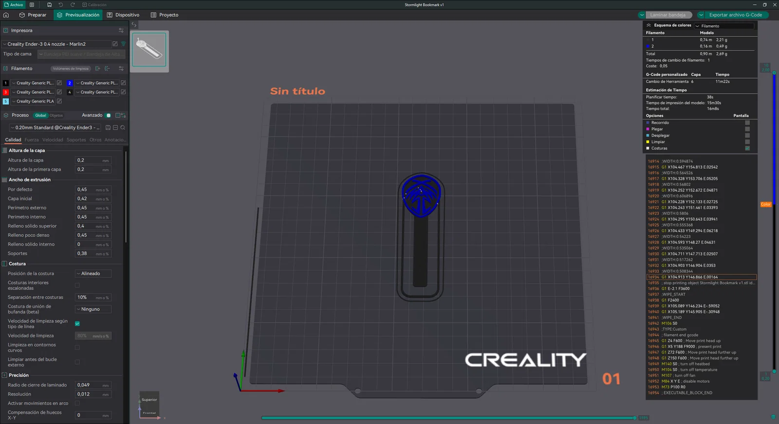 - Multi-Layer (STL): Bắt đầu với màu nền, rồi thực hiện đổi filament tại layer 6 để in màu logo.