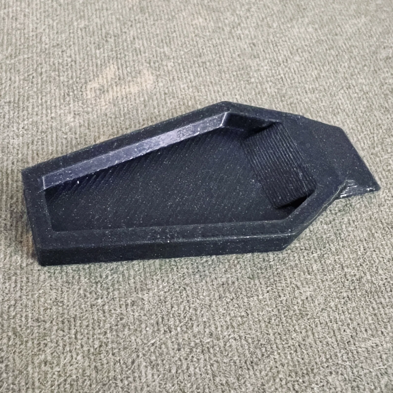 Chén thức ăn mini kiểu hình quan tài cho isopod, hợp không khí Spooky Season. Mẫu được scale để đựng ít bột Morning Wood & Calcium cho colony nuôi sinh sản; có thể scale lớn hơn cho dubia roaches hoặc loài lớn hơn.