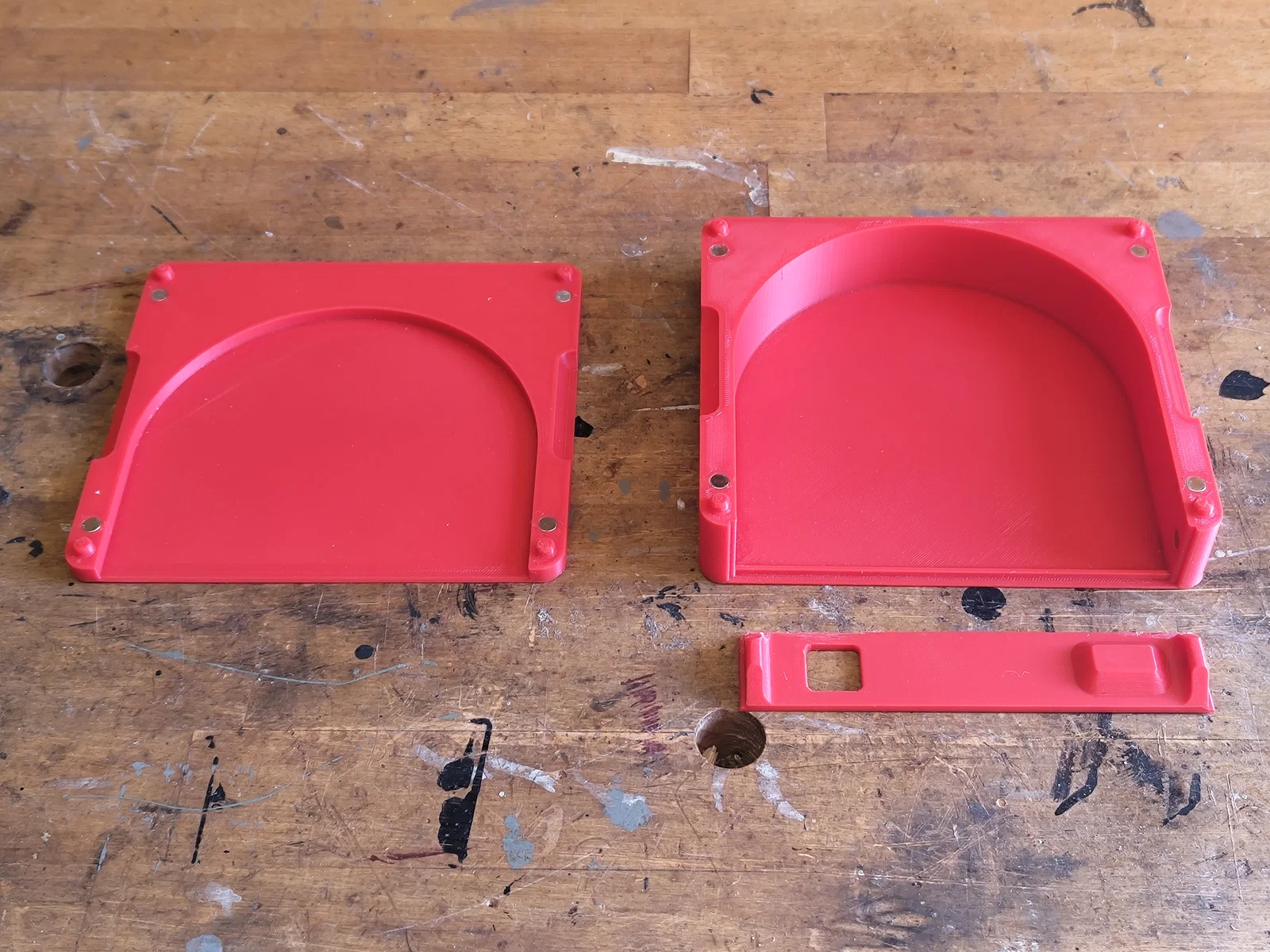 - Thiết kế dùng khá nhiều nam châm. Mỗi lớp có thể dùng tới 14 viên (4 trên, 4 dưới, 4 cho cơ chế snap của cửa và 2 cho cơ chế snap của nhãn). Tuy nhiên bạn có thể thay một phần bằng đai ốc thép thường M3 mà chức năng hầu như không giảm (nếu có thì cũng rất ít):